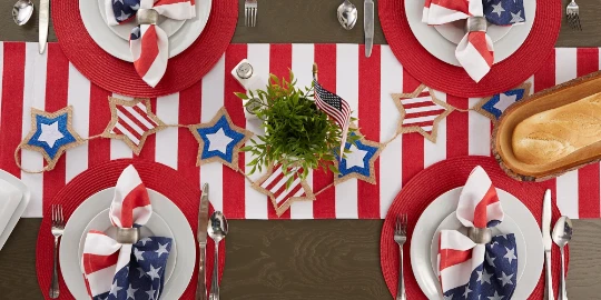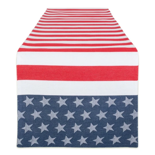 These table runners are perfect for picnics, parties, showers, dinners, everyday use and more. Great for entry way tables, low book shelves, dining tables, or other surfaces of your home as well. 1 inch folded hem and mitered corners. Machine washable for easy clean up and use. Dimensions: 14"W x 72"D x 0.1"H