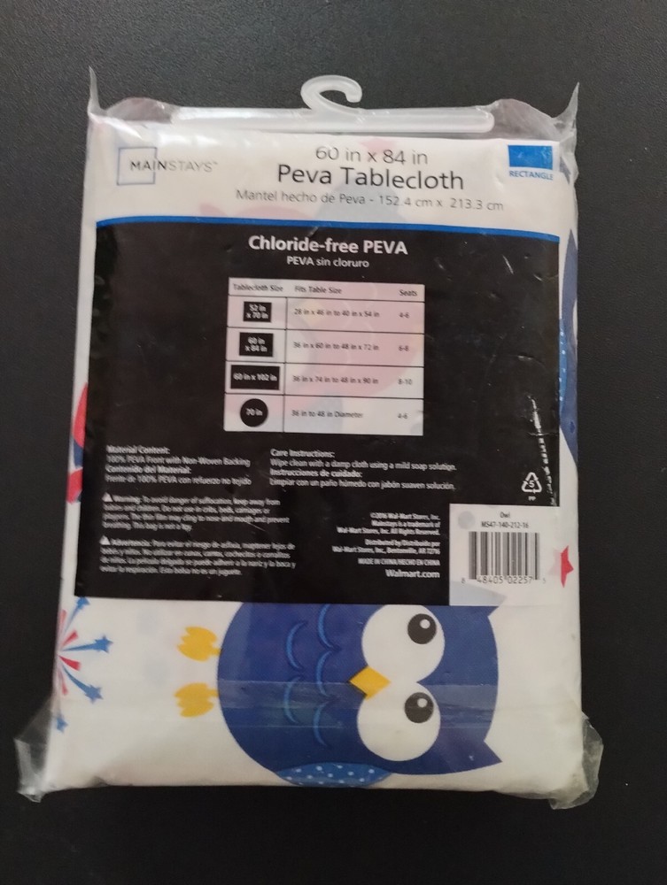 Patriotic Owl Tablecloth 60 x 84 Wipe Clean PEVA Red White Blue Bird Decor NIP. Outer packaging has some shelf wear, see photos for greater details. Free well packed First Class shipping...
