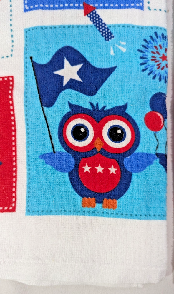 Home Sweet Home Patriotic Owls Multi-Purpose Kitchen Towels. You will receive 2 towels. 100% cotton. Measures 15" x 25" Our items come from a non-smoking and pet-free environment.