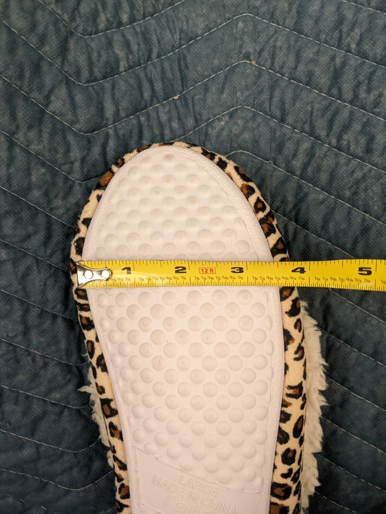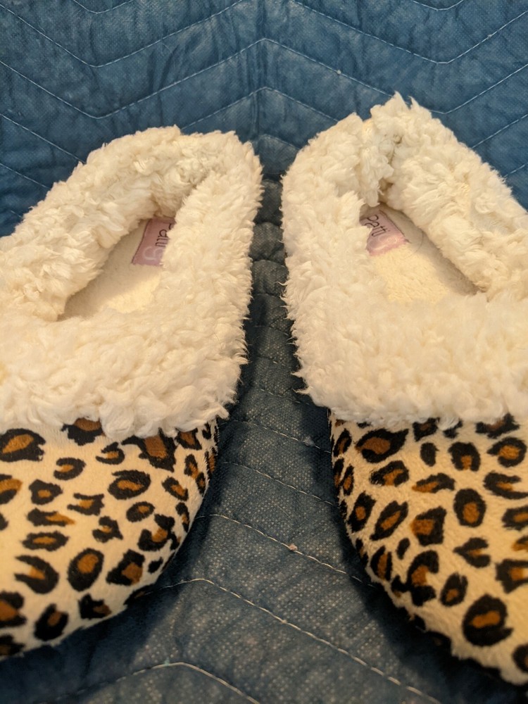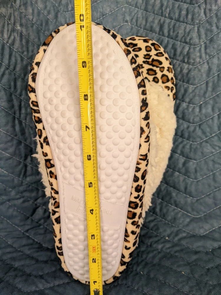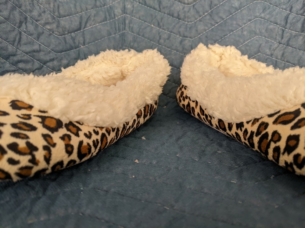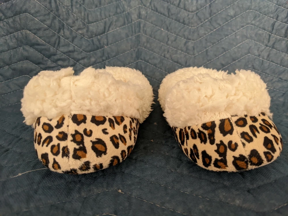 These slippers are so comfortable and cozy—perfect for relaxing at home! The tan and leopard design is stylish, and the slip-on style makes them super convenient. They’ve been gently used but are clean and in great condition. Love how soft and warm they are—a fantastic find!