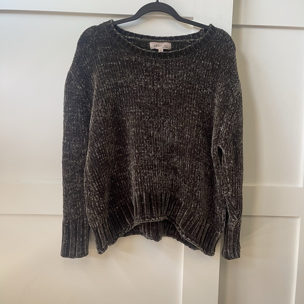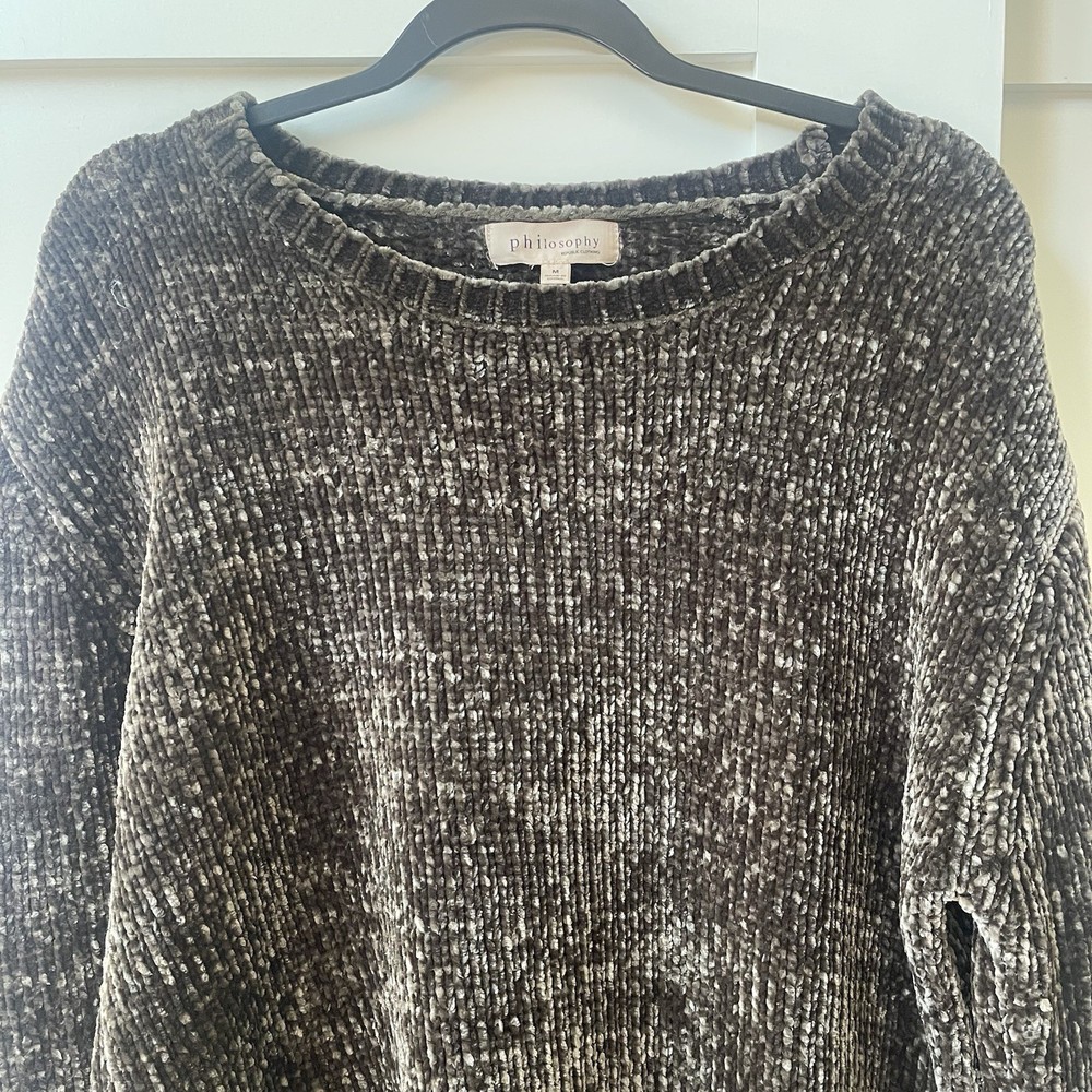 The Philosophy M Cozy Brown and Grey Sweater is a stylish and comfortable pullover designed for women in size M. Made from knit fabric, this sweater features long sleeves and is perfect for the winter season. The brown color adds a touch of warmth and elegance to the classic design, making it an essential piece for any woman's wardrobe.