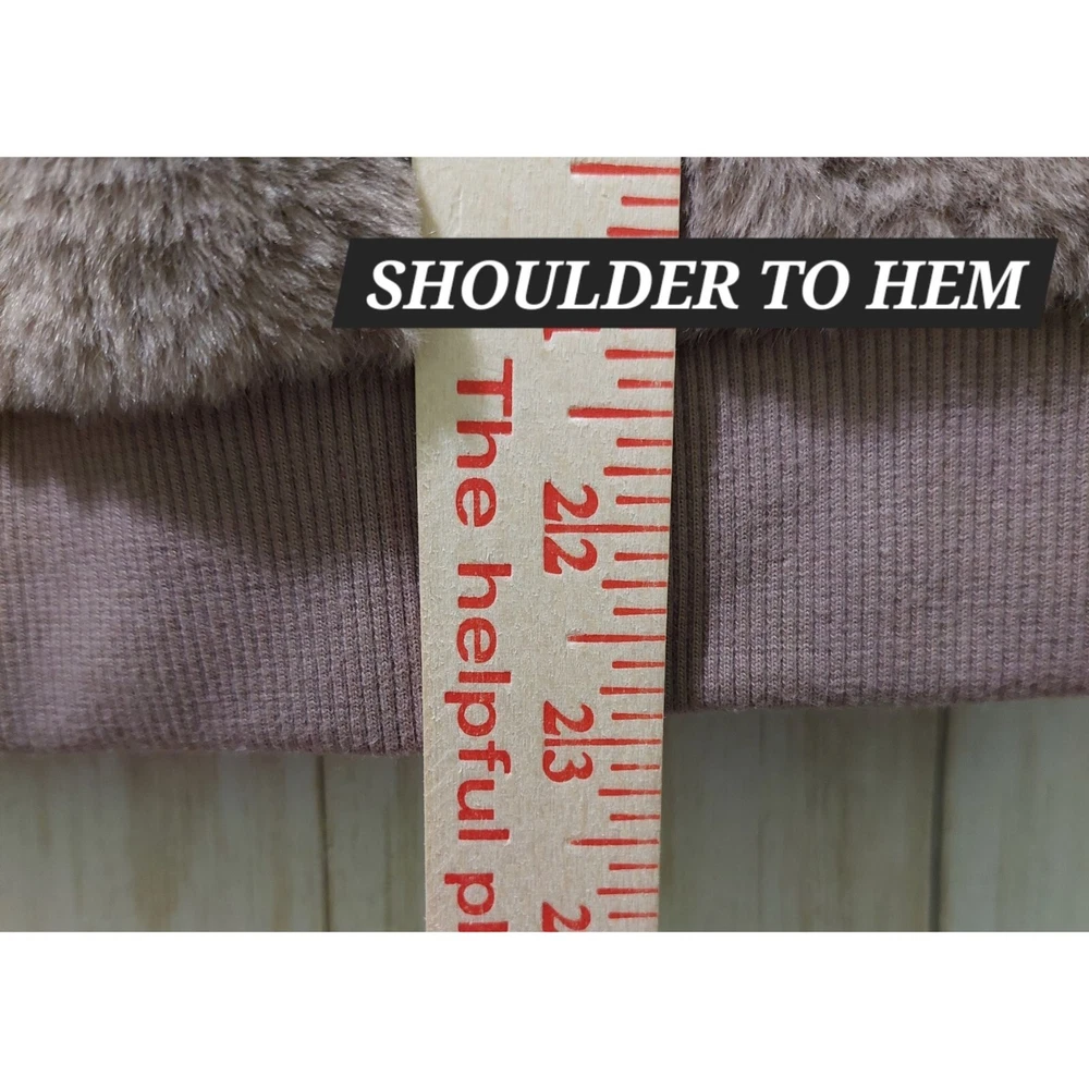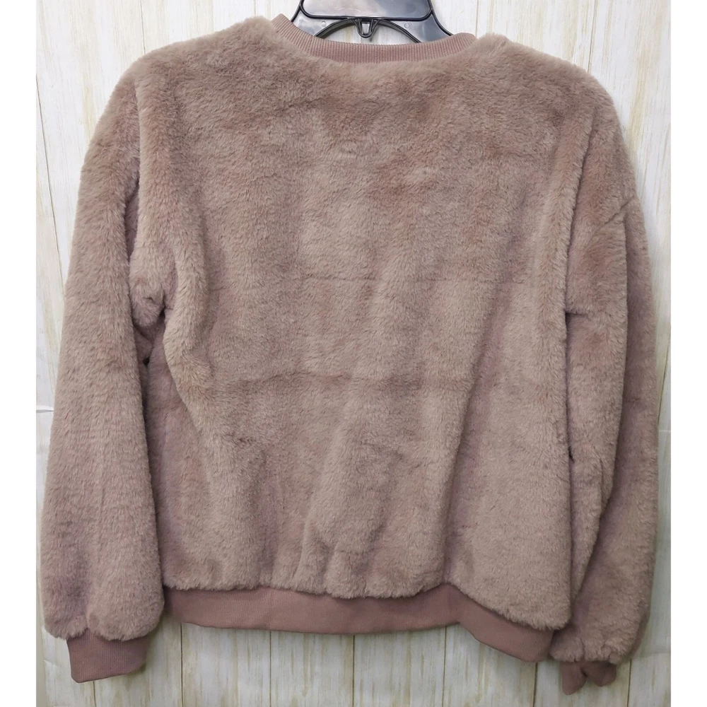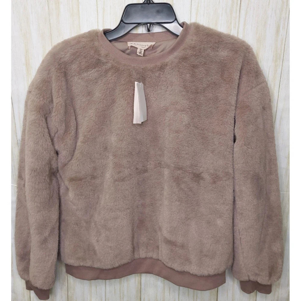 Wrap yourself in the faux fur embrace of this Philosophy Republic sweater. It's like wearing a pet that never needs feeding. • Faux fur exterior • 100% polyester • Soft and cozy • Stylish design Pit to pit = 20 inches Shoulder to hem = 23 inches
