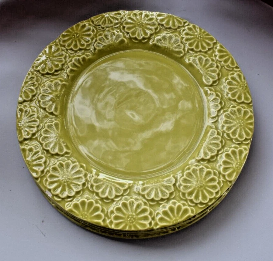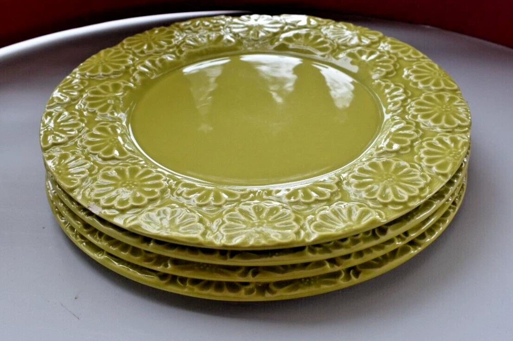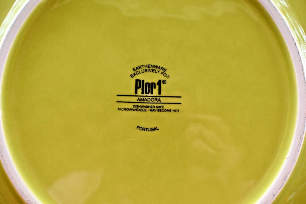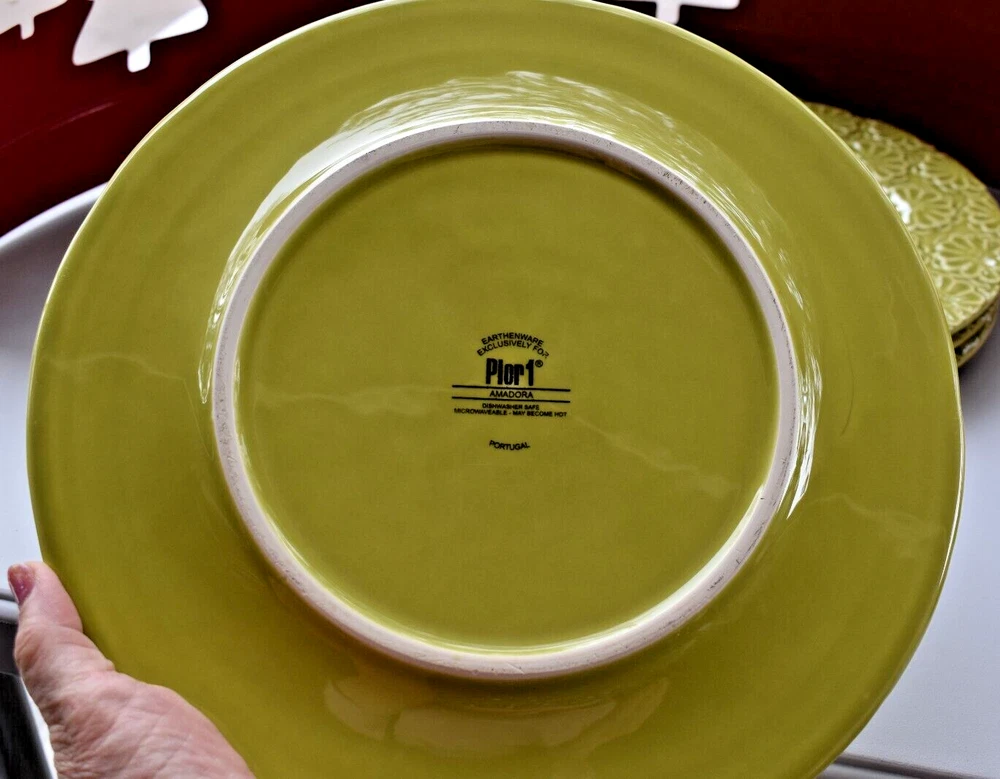 Add a touch of elegance to your dining table with this set of four round dinner plates from Pier 1's Amadora collection. Each plate has a diameter of 11 inches, making it perfect for serving your favorite dishes. The plates are made of high-quality stoneware and have a glossy finish that adds a touch of sophistication to any meal. The plates are hand-painted with a beautiful flower pattern that adds a pop of color to your table setting. They are stackable, microwave safe, and dishwasher safe, making them convenient to use. These plates are perfect for all occasions and will make a great addition to your dinnerware collection.