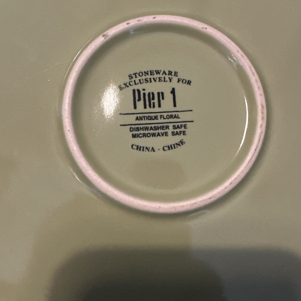 Pier 1 ANTIQUE FLORAL 10 7/8" Dinner Plate Green Embossed Floral Scrolls Band. Condition is Used. Shipped with USPS Ground Advantage.