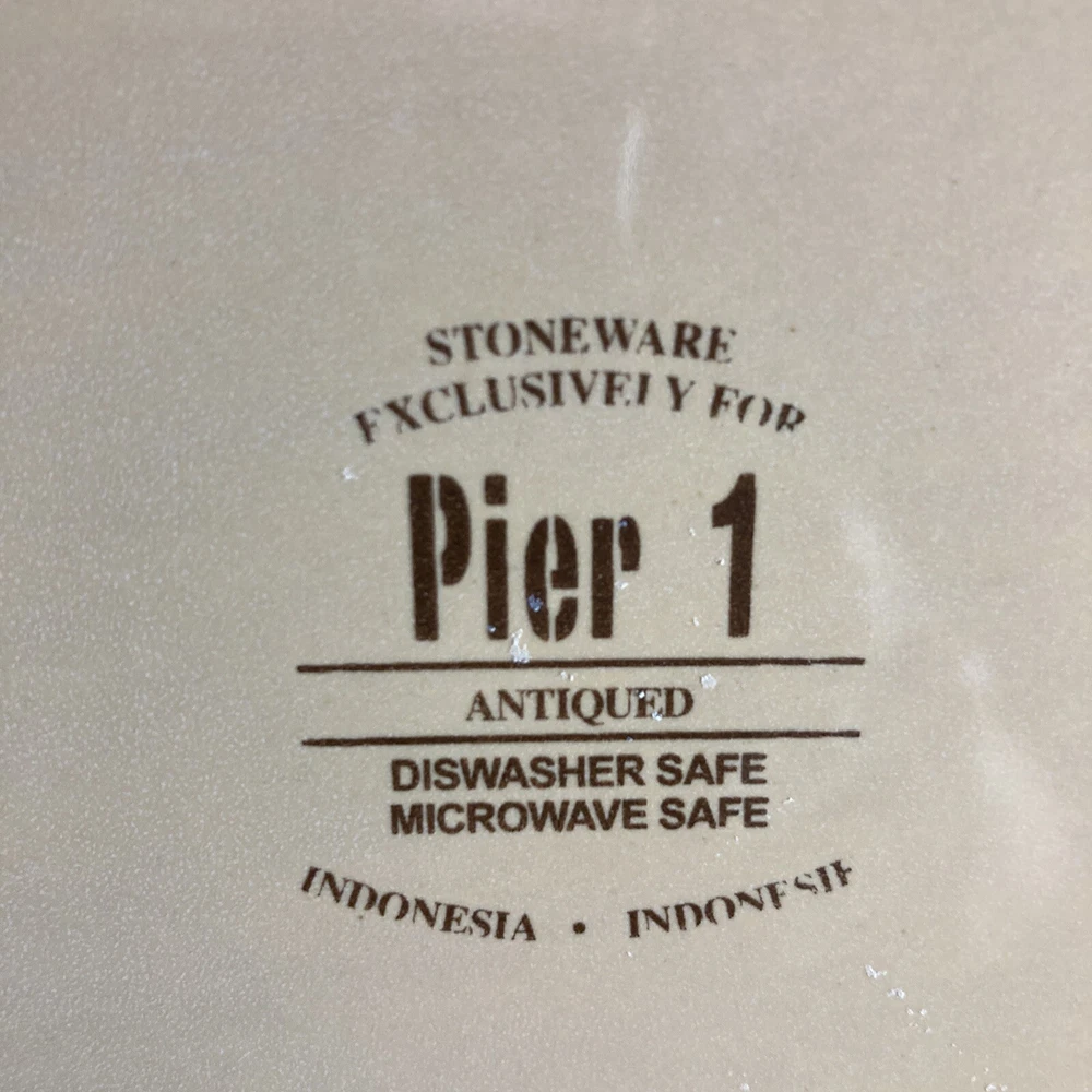 For sale various pieces of Pier 1 Antiqued. Each piece would make a perfect addition to an existing set. There are no chips or cracks. Dishes are in great shape and durable for everyday use, dishwasher, and microwave safe. Buyers should expect that this item will likely show some signs of use or wear. Please use the drop-down menu to pick the piece you would like because the items are listed and sold by the piece. The shipping weight is based on the heaviest item and can be adjusted for lighter items. If you are interested in purchasing multiple pieces, please message me with your zip code and the items I will create a variation in this listing for your items with the correct shipping and the applicable discount. From a smoke and pet free home. All orders are packed superbly , shipped Priority Mail and within one day of payment. All descriptions are only my opinion. Please use the photos to finalize your decision and contact me with any questions. Thank you!
