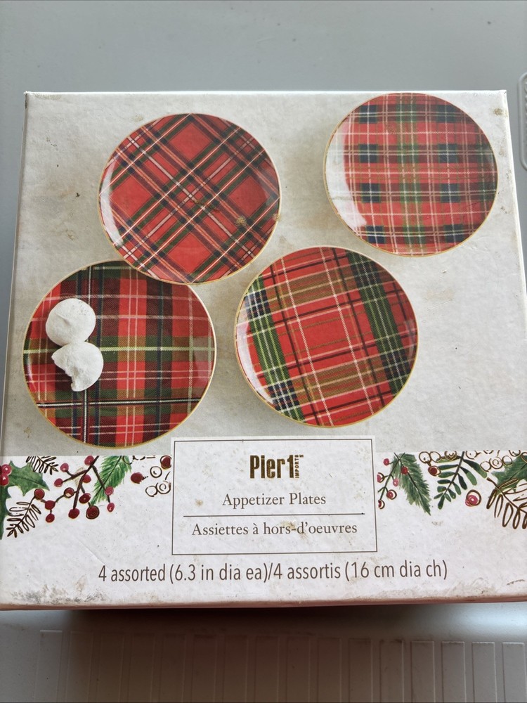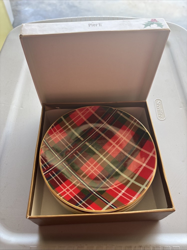 Pier 1 Appetizer Plates Christmas Plaid - Set of 4 Hors D'Oeuvres 6.3 In...