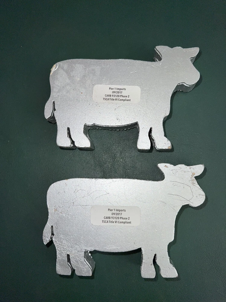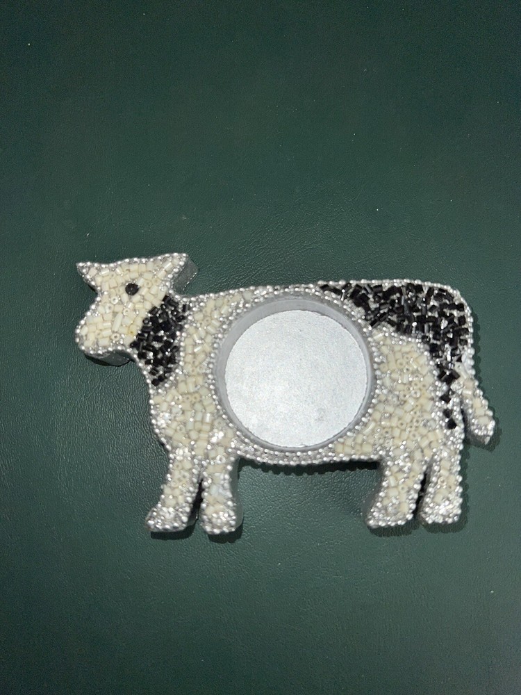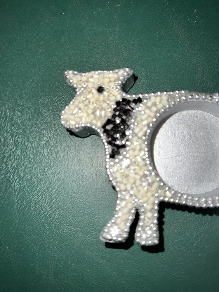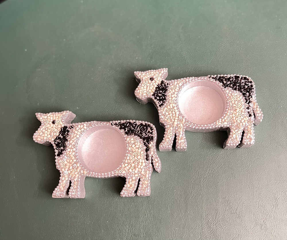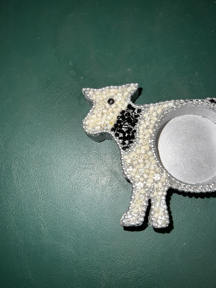 Pier 1 Beaded Cow Shaped Tea Light Holders, Silver Painted Wood w/Black White Silver Beads & Rhinestones. Very Good Condition Condition Is Preowned In VGC, All Beading & Rhinestones Are Present And Look Wonderful, They Look Terrific, Stored In A Smoke and Pet Free Facility. FREE SHIPPING, Shipped Via USPS Listed 10/20