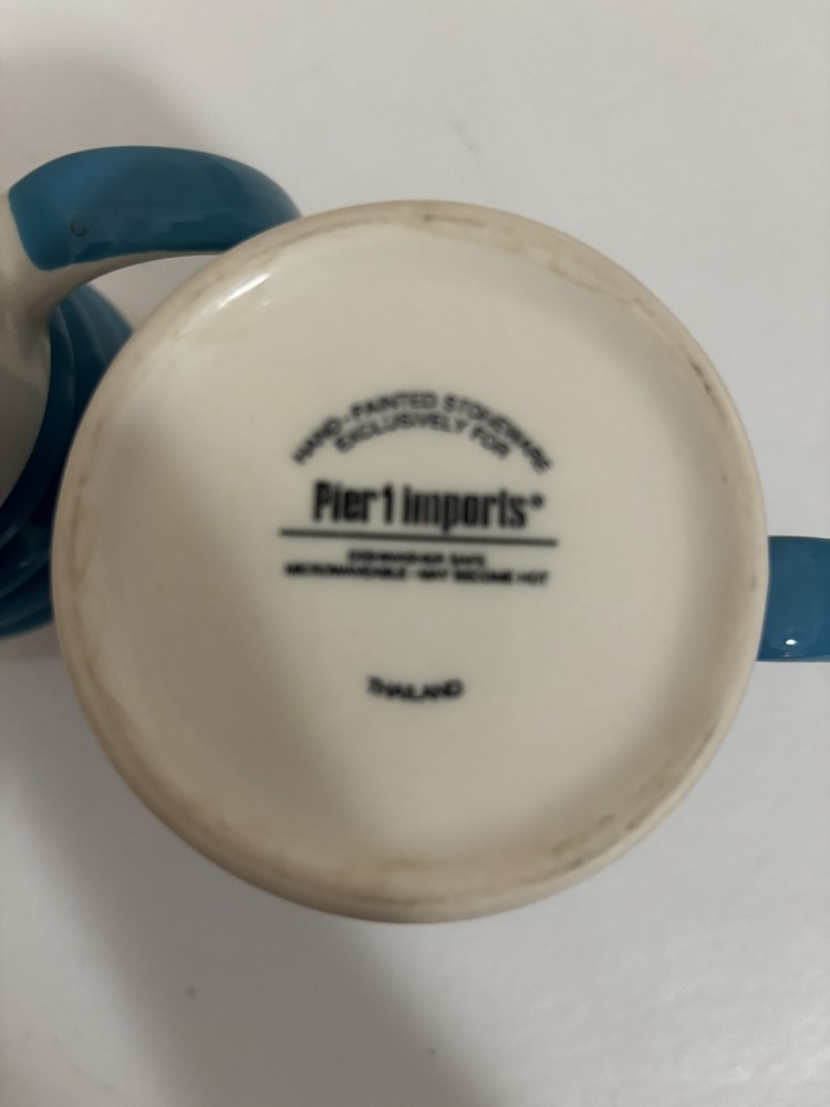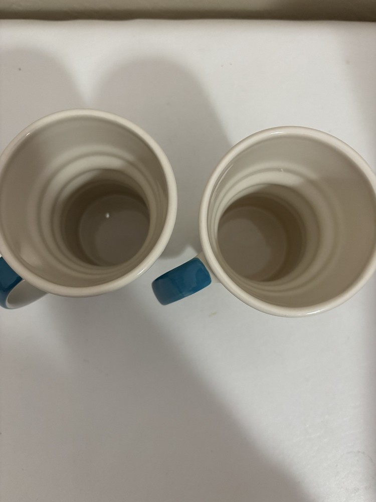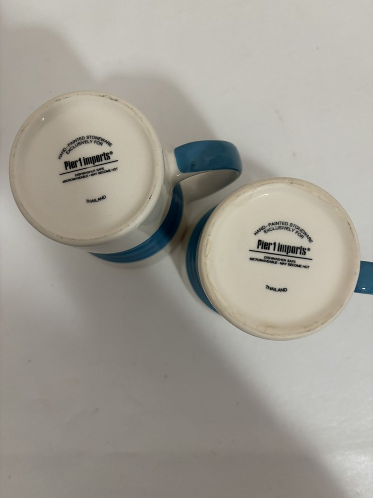 Pier 1 Blue & White Accordion Ribbed Design Stoneware Mug Coffee Tea Set 2...