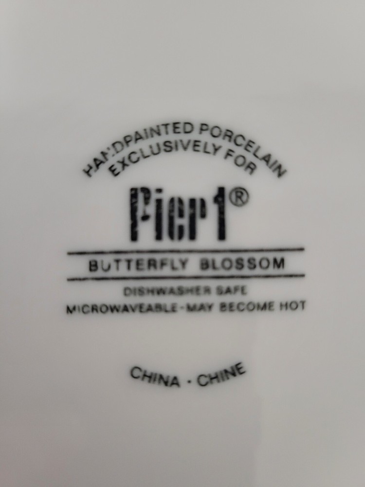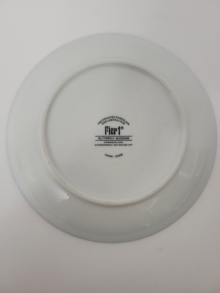 Pier 1 Butterfly Blossom Rust Red and Blue Salad Luncheon Plate Butterflies. Hand painted porcelain Pier 1 salad or luncheon plate with an 8" diameter. Pattern is "Butterfly Blossom". Dishwasher & Microwave safe.