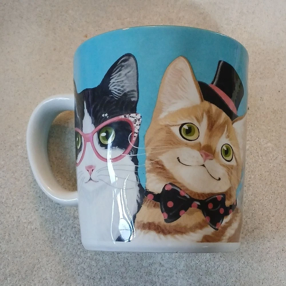 Pier 1 Cat Mug Embrace your inner cat lover with this charming Pier 1 Imports mug featuring a playful blue and white design. Blue and White Color Scheme: The classic color combination offers a clean and timeless look that complements various kitchen decors. Durable Ceramic Construction: Made from high-quality ceramic, this mug is both microwave and dishwasher safe, ensuring convenience and longevity. Whether you're sipping your favorite beverage or displaying it as a decorative piece, this Pier 1 cat mug is sure to delight cat enthusiasts and add a whimsical touch to any collection.