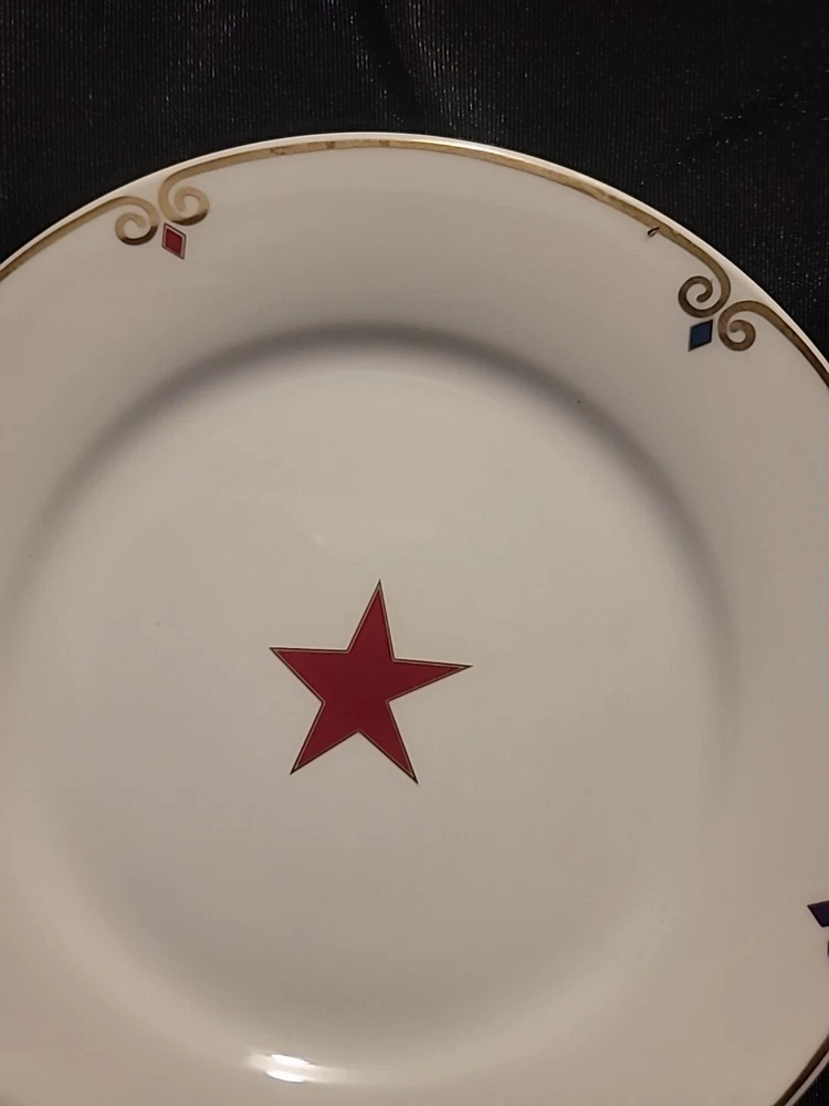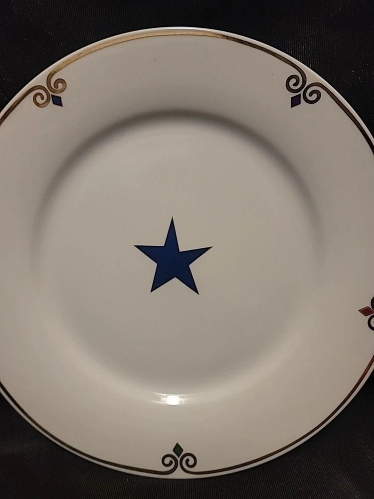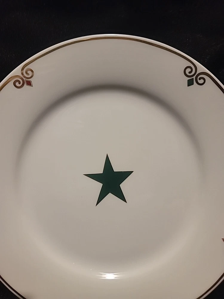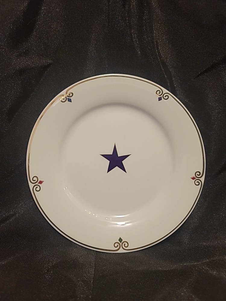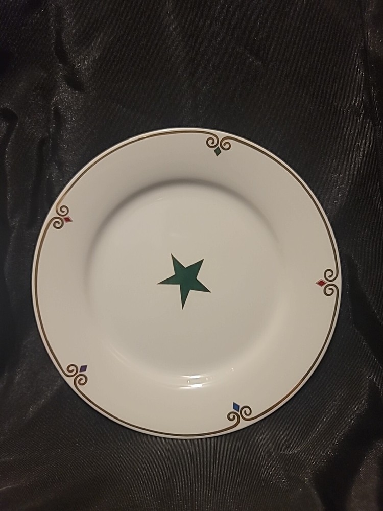 Condition: *NEW IN BOX* Never Opened, only to photograph -Box has minor damage and dust -Set of 4 - each plate has a different color star in middle - Red, Green, Purple, Blue -Discontinued **SEE PHOTOS ***Photos are actual item you are purchasing*** I've thoroughly inspected the plates and have, to the best of my ability, tried to note any issues (and photograph any). If I have missed anything it is by sheer accident and I will correct the problem. Please see photos. PLEASE READ - We do not charge any shipping/handling charges. The shipping cost is the EXACT amount we pay. Due to the weight, the most economical shipping is USPS Parcel Select Ground to help keep shipping cost down