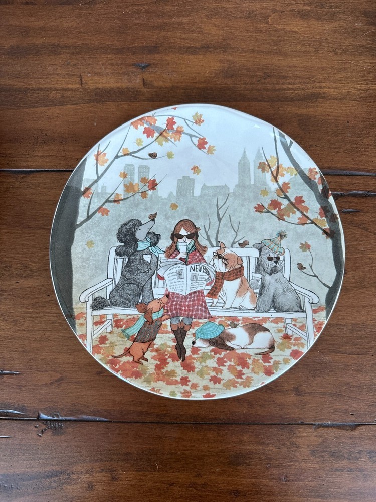 Pier 1 Central Park Avenue Pups Plate LAZY SUNDAY Poodle Dog Bench New York NYC , measures 9"...