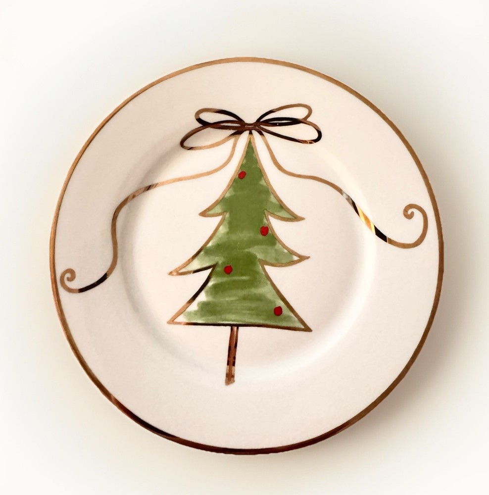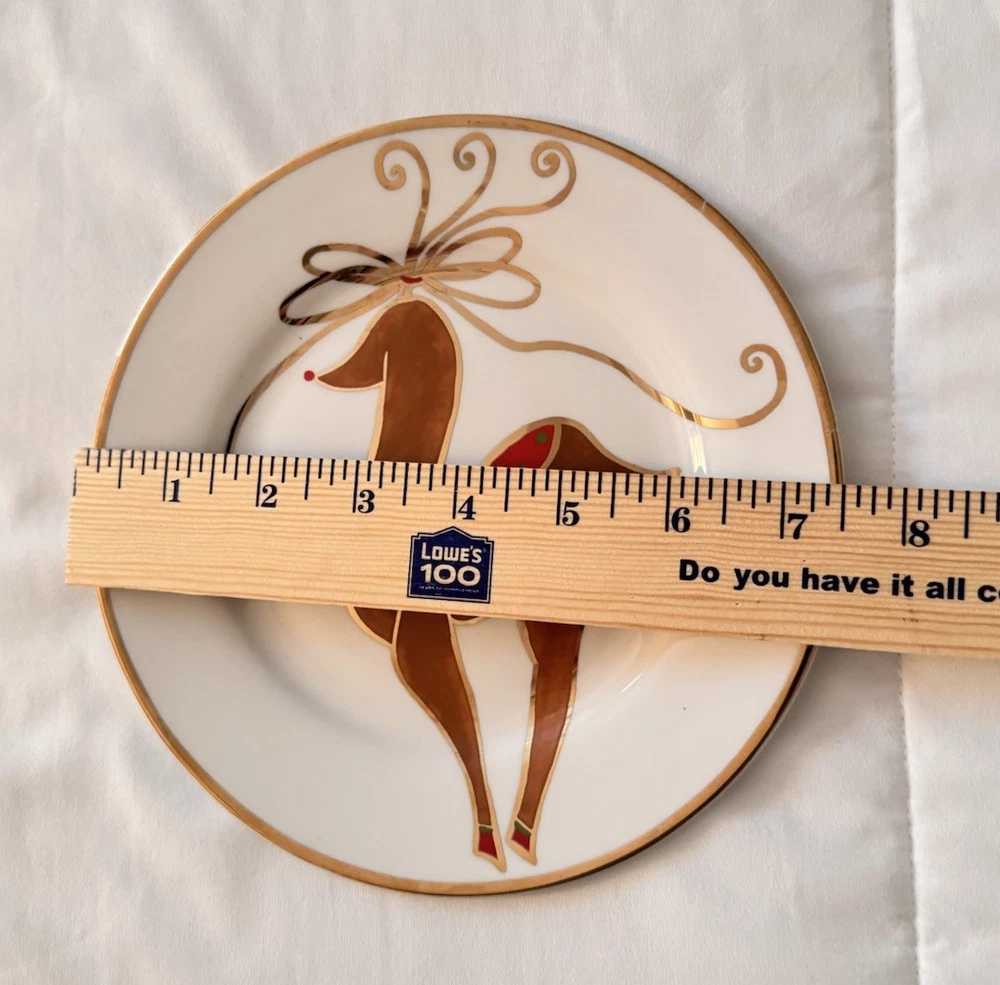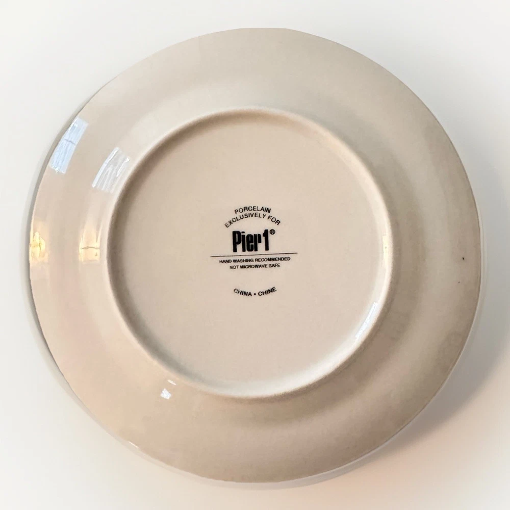 Pier 1 Christmas Holiday Dessert Appetizer Plates 7.5” Porcelain Gold Accents Set of 4 7.5” dessert/salad plates in excellent pre-owned condition.