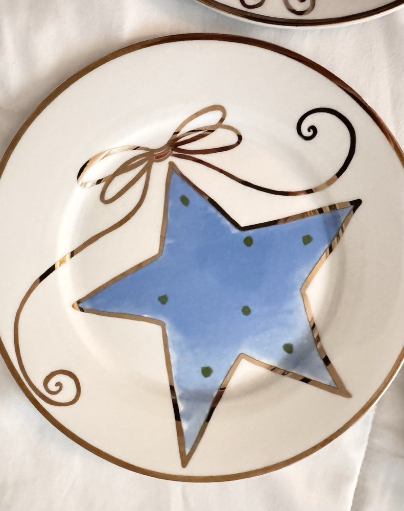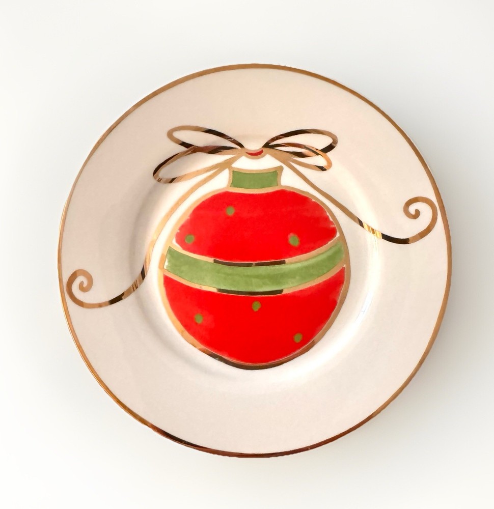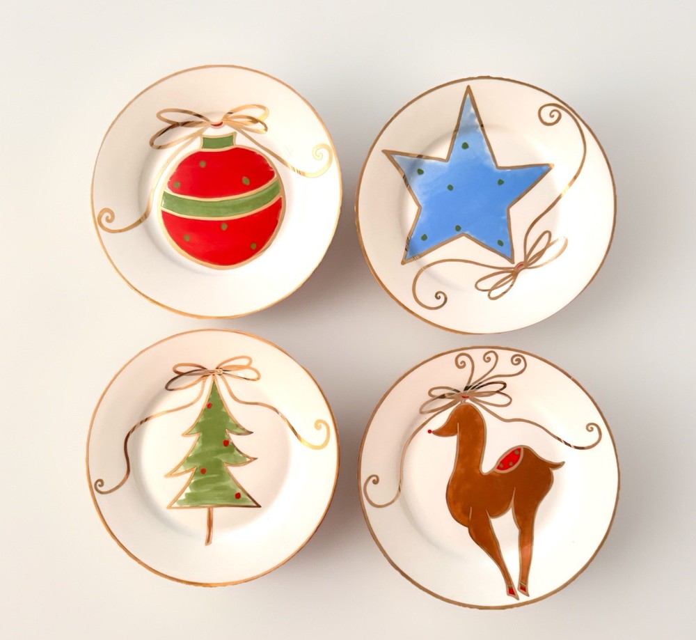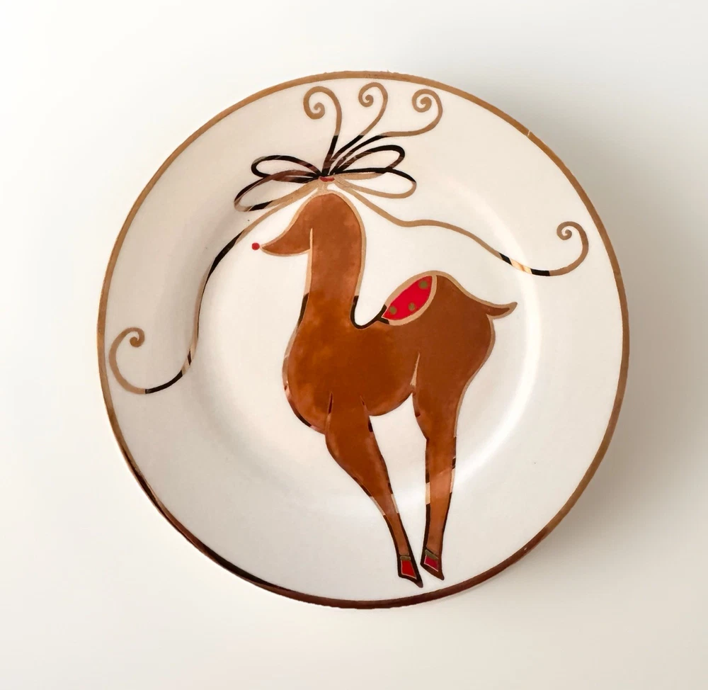 Pier 1 Christmas Holiday Dessert Appetizer Plates 7.5” Porcelain Gold Accents Set of 4 7.5” dessert/salad plates in excellent pre-owned condition.