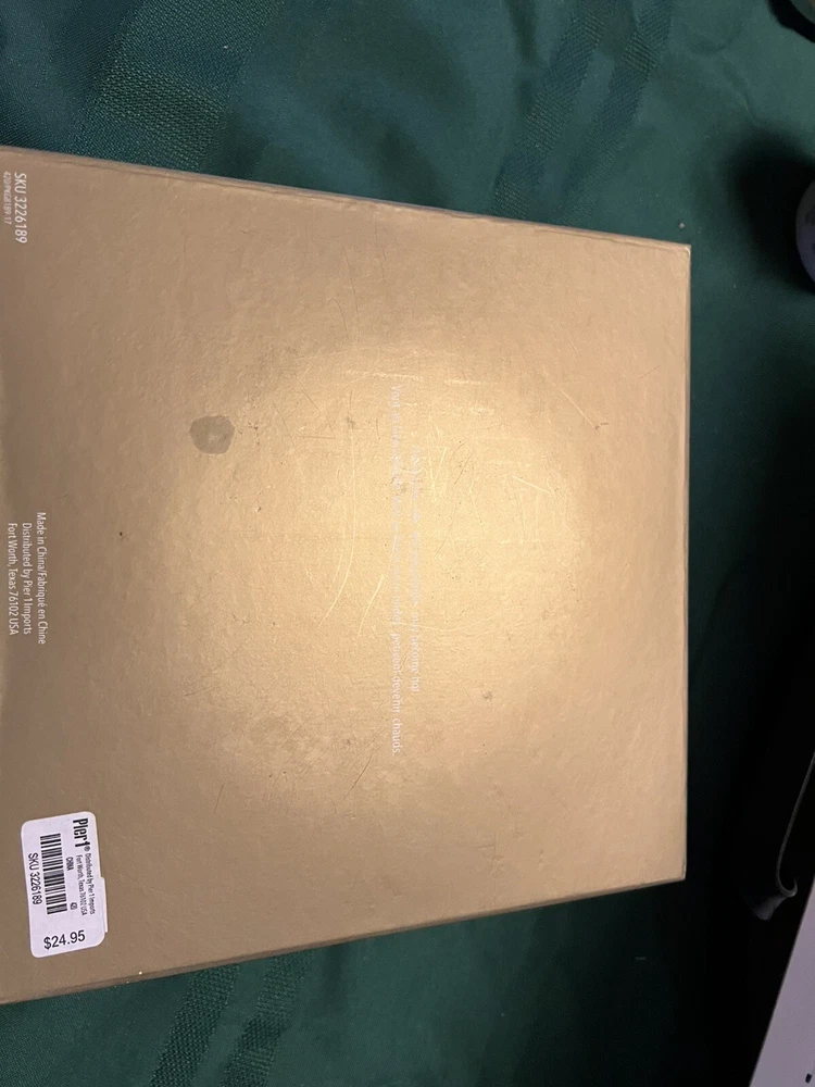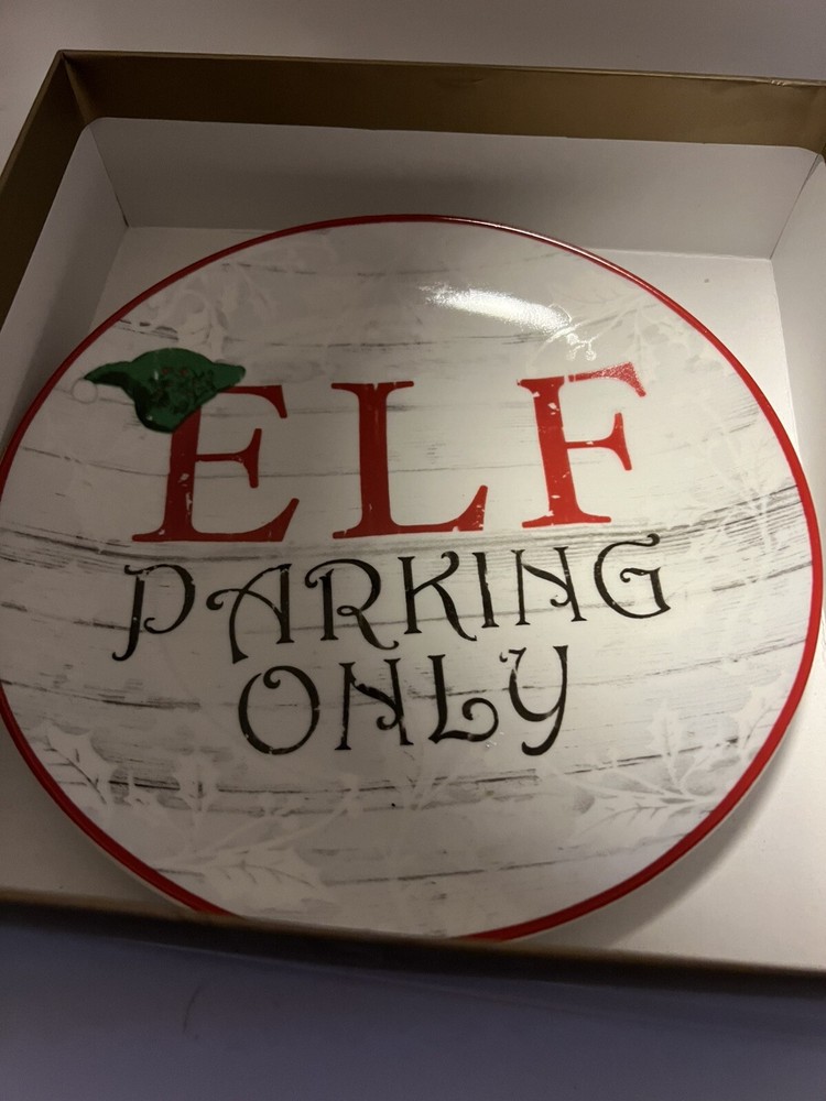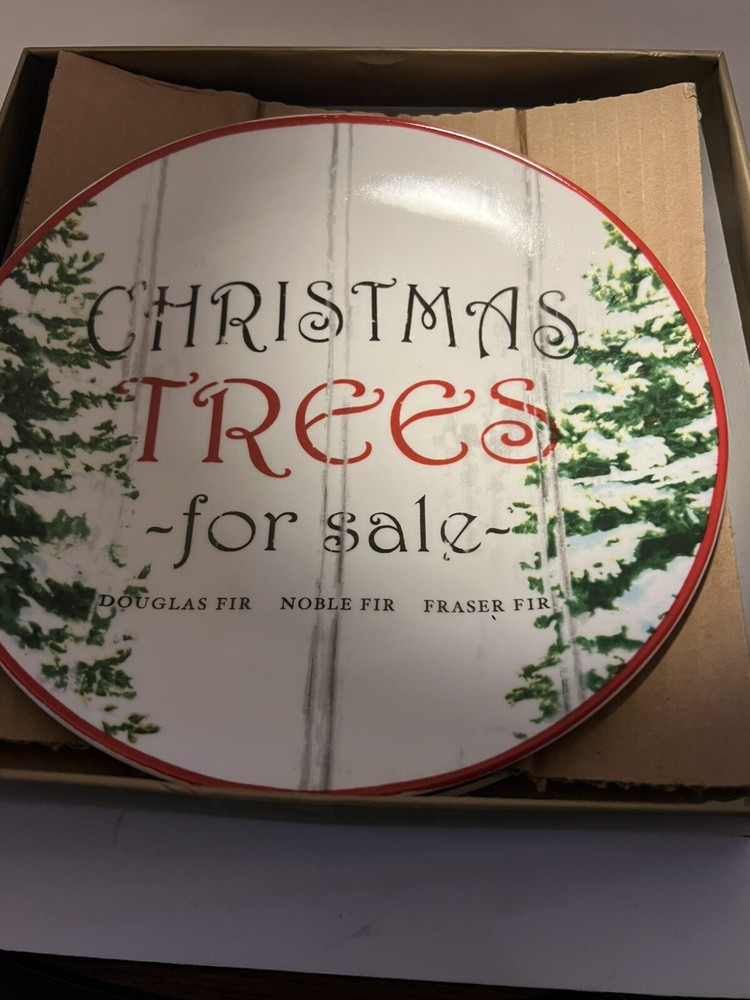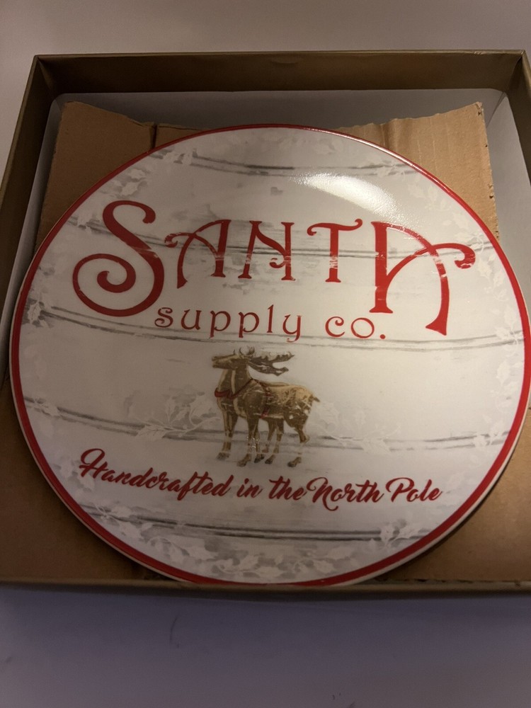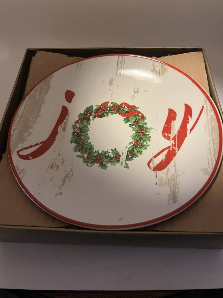 These Pier 1 salad plates are 8 inches in diameter. They each have a different Christmas design on them. One says as Joy. One says Christmas trees for sale. Another says elf parking only. The last one says Santa supply Co. handcrafted in the north pole. These are brand new in the box. I am selling three sets in total. The price is for one set each. You may buy one, two or three sets of plates. Each box has four salad/appetizer /dessert plates in them . A7
