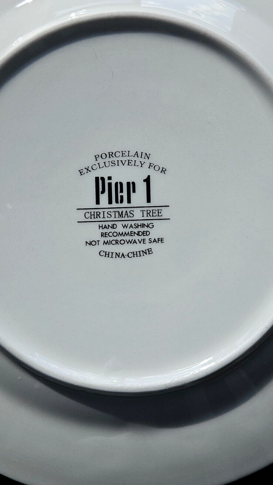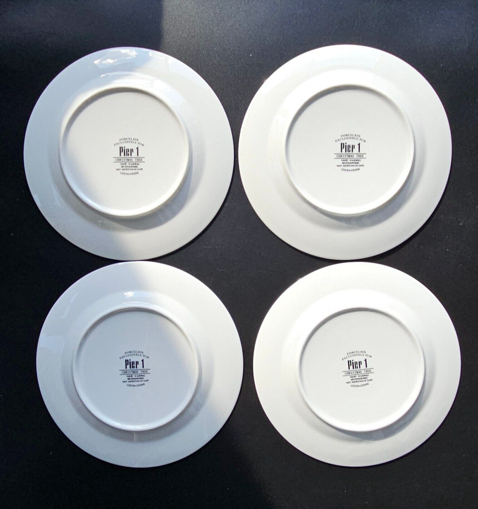 Pier 1 Christmas Tree Holiday 4 Plates For Dessert Salad Green & Red with Gold Star Pre-owned in good condition