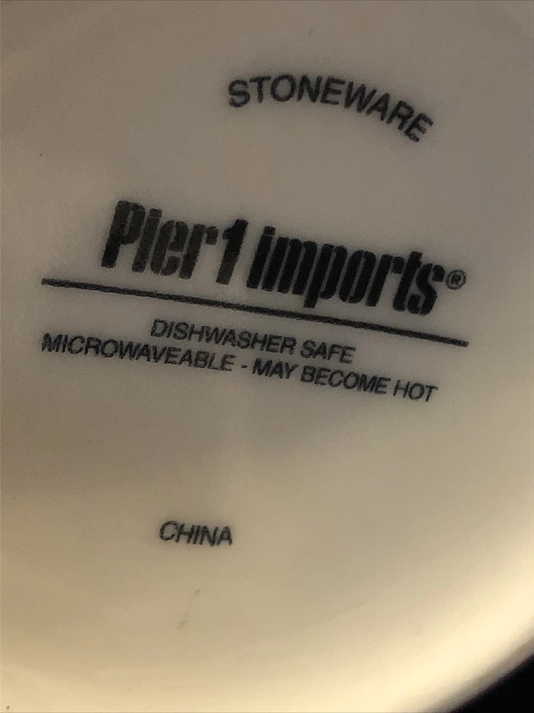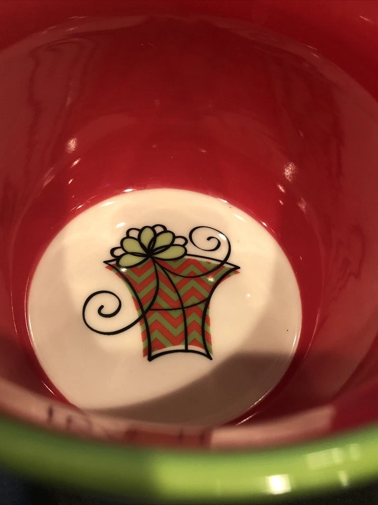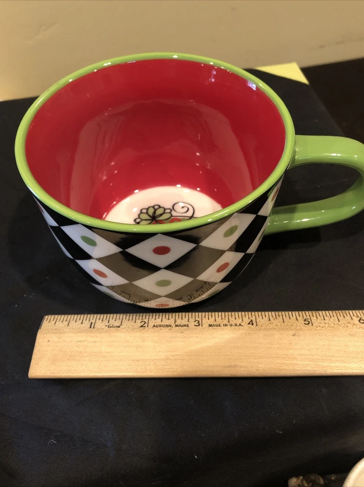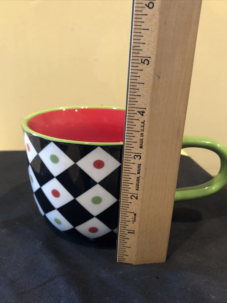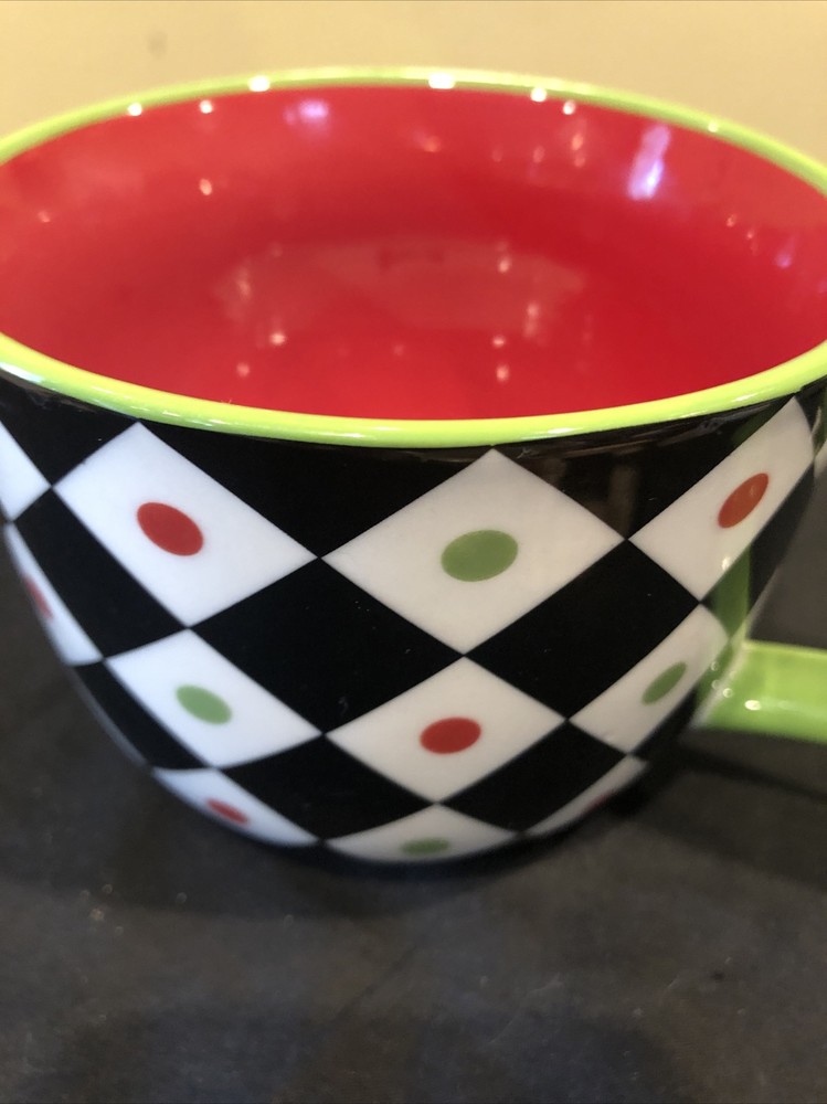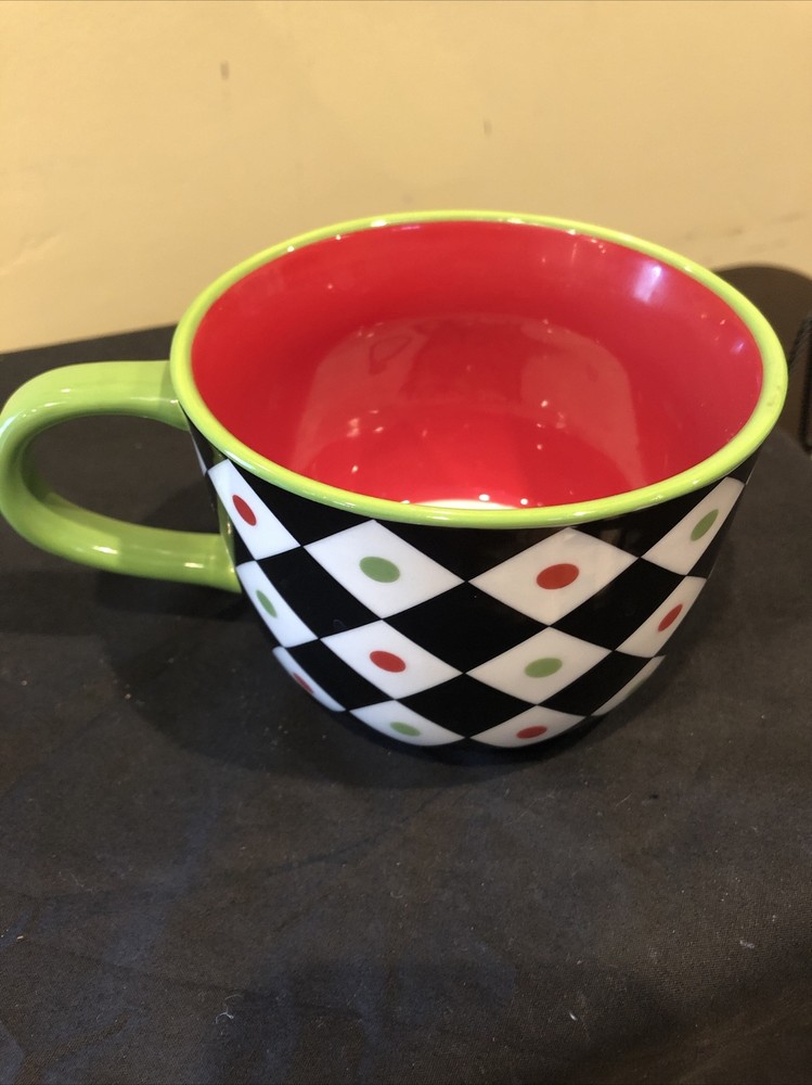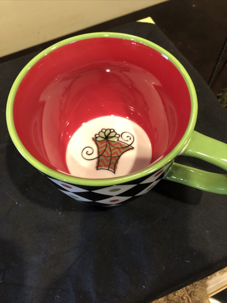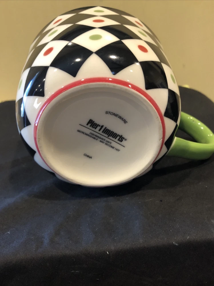 Pier 1 Coffee Mug Squared Patten Christmas Holiday Large Cup With Design Inside. Condition is great. Please see pictures closely no damage no chips no cracks beautiful little mug designs colors still bright and brilliant no damage to any parts of the pattern.