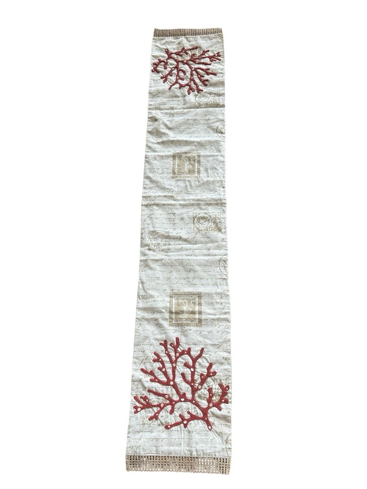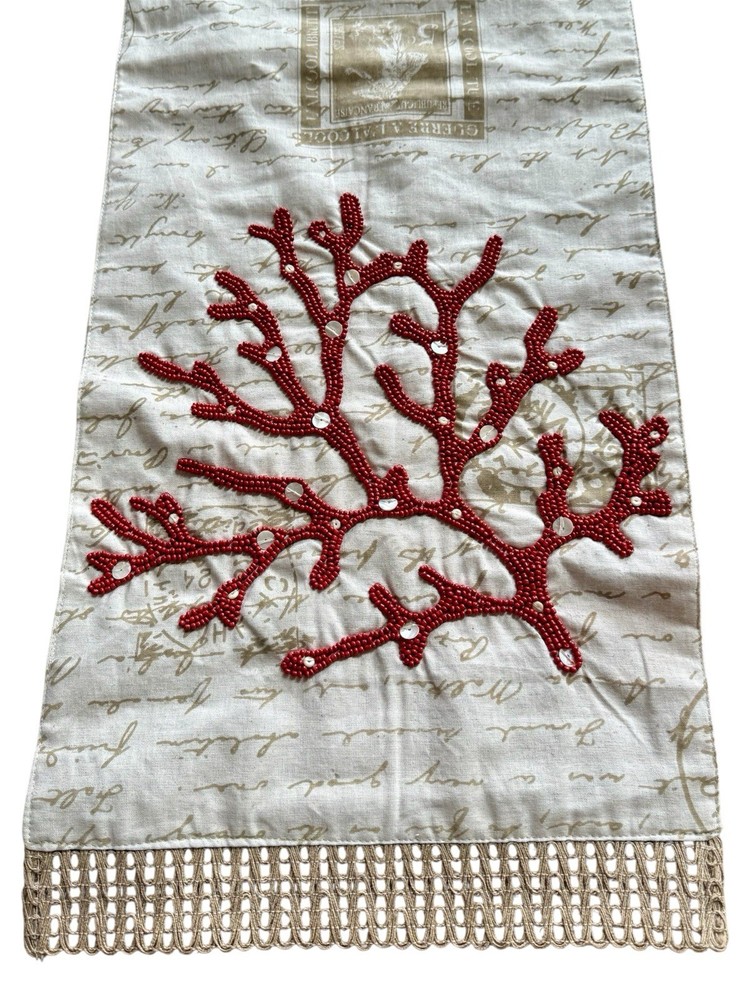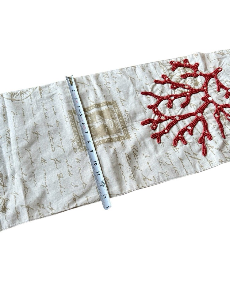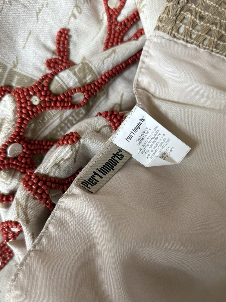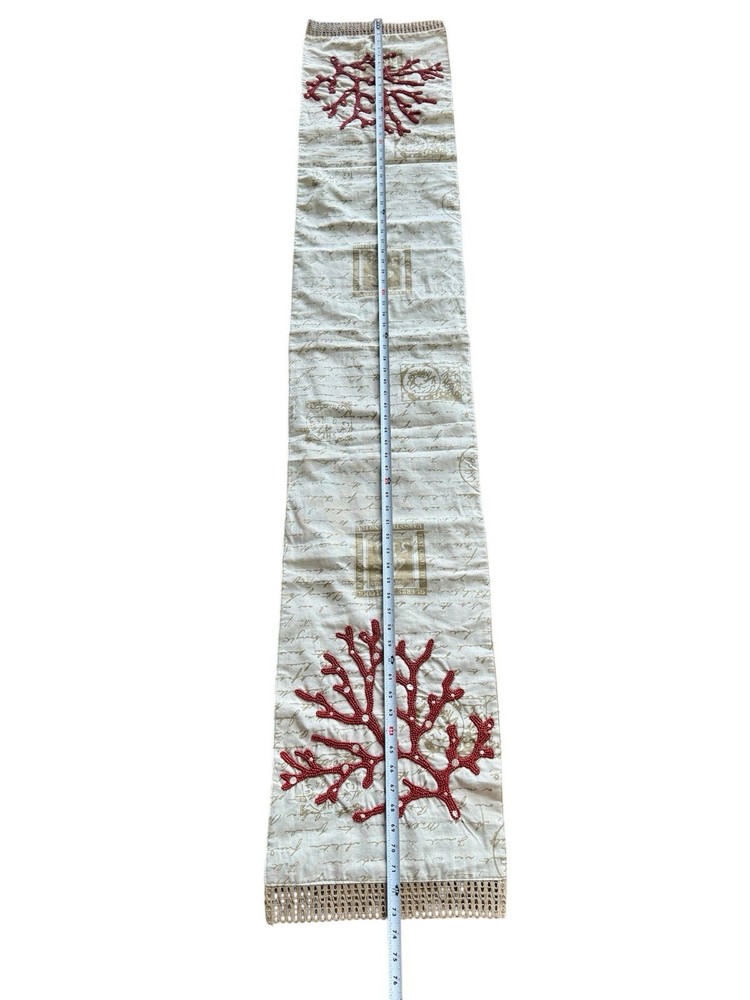 Pier 1 Coral Beaded Cotton Table Runner Jude Trim Coastal Beach Nautical In excellent almost new condition without any issues Used for staging purposes Approximately 73” x 13” Exact measurements are in the photos Please check the pictures carefully, they are part of the description I combine shipping for multiple purchases (up to 2 sets) I don’t ship to P.O. Boxes, HI and Alaska I don’t accept returns I just offer individual refund for damaged item(s) in case of accidents during shipments and I don't include shipping due to high shipping costs & material No exceptions!