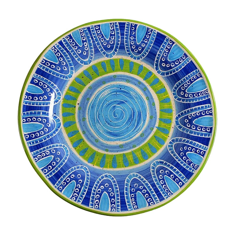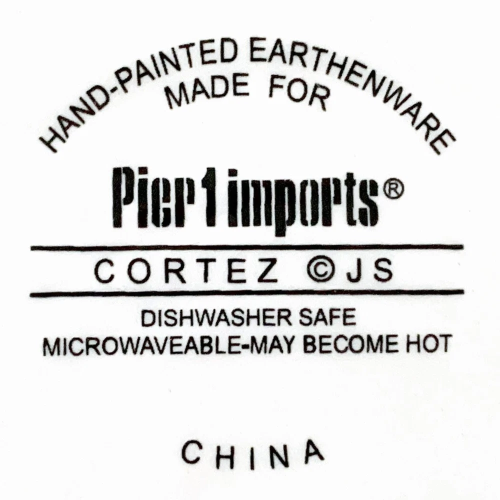 PIER 1 Salad / Snack Plates | Set of 2 Beautiful colorful geometric print plates from Pier 1. The pattern is Cortez, it was introduced in 2013 and discontinued in 2014. Measurements: they're 8.75" in diameter and stand 1.25" above a flat surface and sit on a 5.38" diameter base. The plates are marked on the bottom: Hand-Painted Earthenware Made for Pier 1 Imports - Cortez - JS - Dishwasher Safe - Microwaveable - May Become Hot - China. If you have questions, please ask. your money back if item is not as described Visit My Store. BLUE WATER BAZAAR THANK YOU FOR SHOPPING WITH ME
