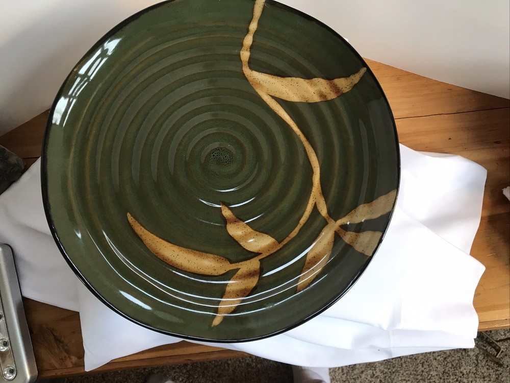 Pier 1 Dakara Green/Brown Swirl Dinner Plate Handpainted 11" Dishwash/Micro safe. no chips/cracks. Good color...