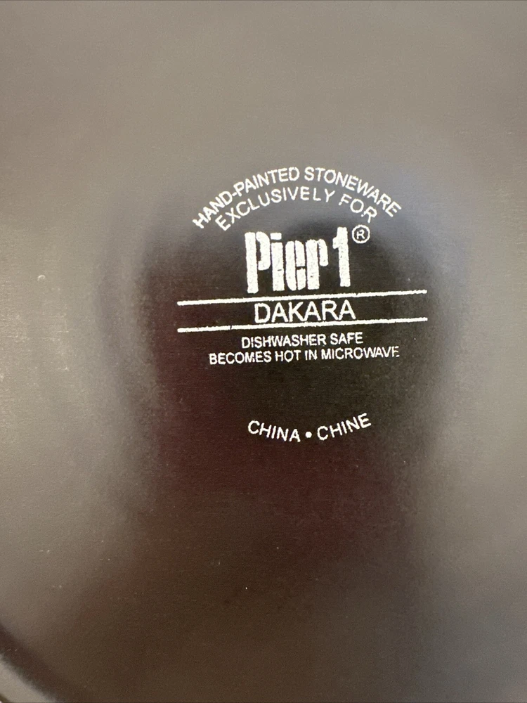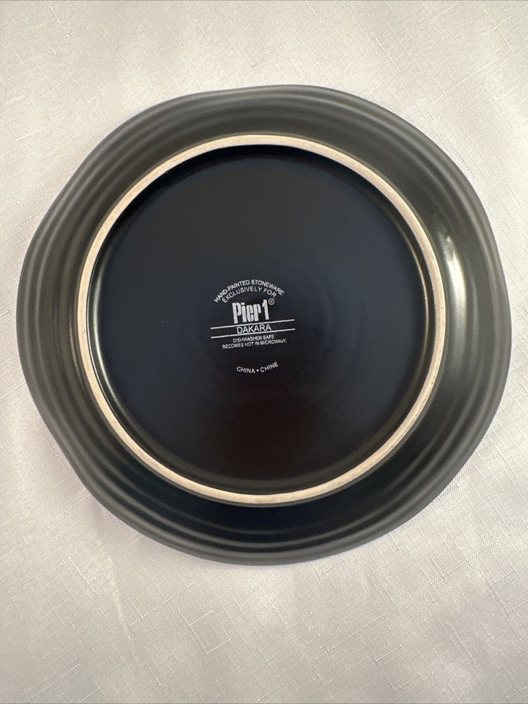 Add a touch of vintage charm to your dining experience with this Pier 1 Dakara Swirl Hand Painted Salad Plate. Crafted from durable stoneware, this round plate features a beautiful hand-painted bamboo design in glossy brown finish. Measuring 8 5/8" in diameter and 1" in height, it makes for a perfect addition to your dinnerware collection. 7 total available, $7.99 each. Please contact me prior to purchase for combined shipping. (16) I try to describe my items as honestly and accurately as possible but it is impossible to be an expert in all realms of collecting. Please be a responsible bidder and examine the photo and read the description. I may inadvertently omit information that you as a collector feel is important. Please e-mail me with any questions you may have PRIOR to bidding. Feedback: Our feedback is important to us - please contact us with any problems you may have BEFORE leaving feedback. We will do our best to work with you - negative/neutal feedback is not a solution. SHIPPING & HANDLING Mailing Address - I will ONLY ship to the address on file with ebay. Before making a purchase, please ensure that your address is correct. Handling Time - Our handling time is set to THREE BUSINESS DAYS. Packages are shipped Monday - Saturday with the exception of holidays. Calculated Shipping - Our shipping fees are calculated based on weight and dimensions. We ship USPS and UPS depending on cost. Insurance - All items should be shipped with insurance. Please do not change to no insurance. PAYMENT Payment - Payment is expected at the close of auction. Non-Paying Bidders - Unpaid item cases are opened after two days of non-payment. Non-paying bidders are blocked from future transactions. Cancelled Transactions - If a winning bidder requests to cancel the sale without a valid reason, they will be blocked from future transactions. I am not set up for International Shipping BIDDING Retracting Bids - Bids can be cancelled through the HELP section of ebay. If a bidder cancels bids excessively, they will be blocked from future transactions. Shill Bidding - If a buyer appears to be bidding and retracting suspiciously to manipulate bids, they will be blocked from future bidding and reported. DAMAGE: If your item is received damaged, it is your responsibility to provide the seller with photos of damage in order for the seller to file a damage claim with USPS. And UPS. You will need to retain the box/envelope and all shipping materials. **You can also take all materials to your local post office to expedite this process. Fine Print: All items are sold AS IS. All Sales are final Thanks for shopping Bellatreasures-US.