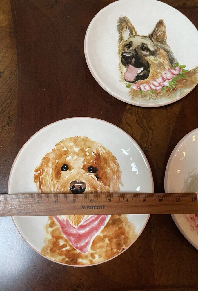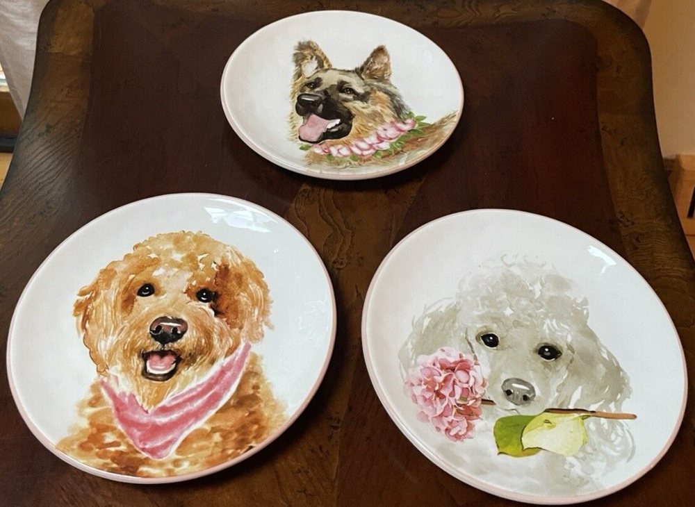 Set of 3 luncheon/dessert/salad plates. Each plate features a different dog. Replacement or addition to an existing set. They are in very good condition, no chips or cracks; there is some clean crazing, but it does not detract from their beauty (see pics). Measures ( approx.): 8 .5" DIA . They are marked on the bottom. Please see photos for more details. Please note that the item is vintage and may show signs of wear. We have done our best to honestly and accurately describe and photograph the item, including possible flaws. What you see are the actual photos of the item being sold. If you have any questions regarding the item, please ask! We DO NOT SELL outside United States. SHIPPING The item will be shipped within three business days after receipt of payment. We ship via USPS to any location within the 48 continental United States, NO INTERNATIONAL SHIPPING. Shipping is calculated by EBAY based on the weight and size of the item plus packaging. We can combine shipping in case you buy multiple items that can be safely shipped together. Thanks for looking!