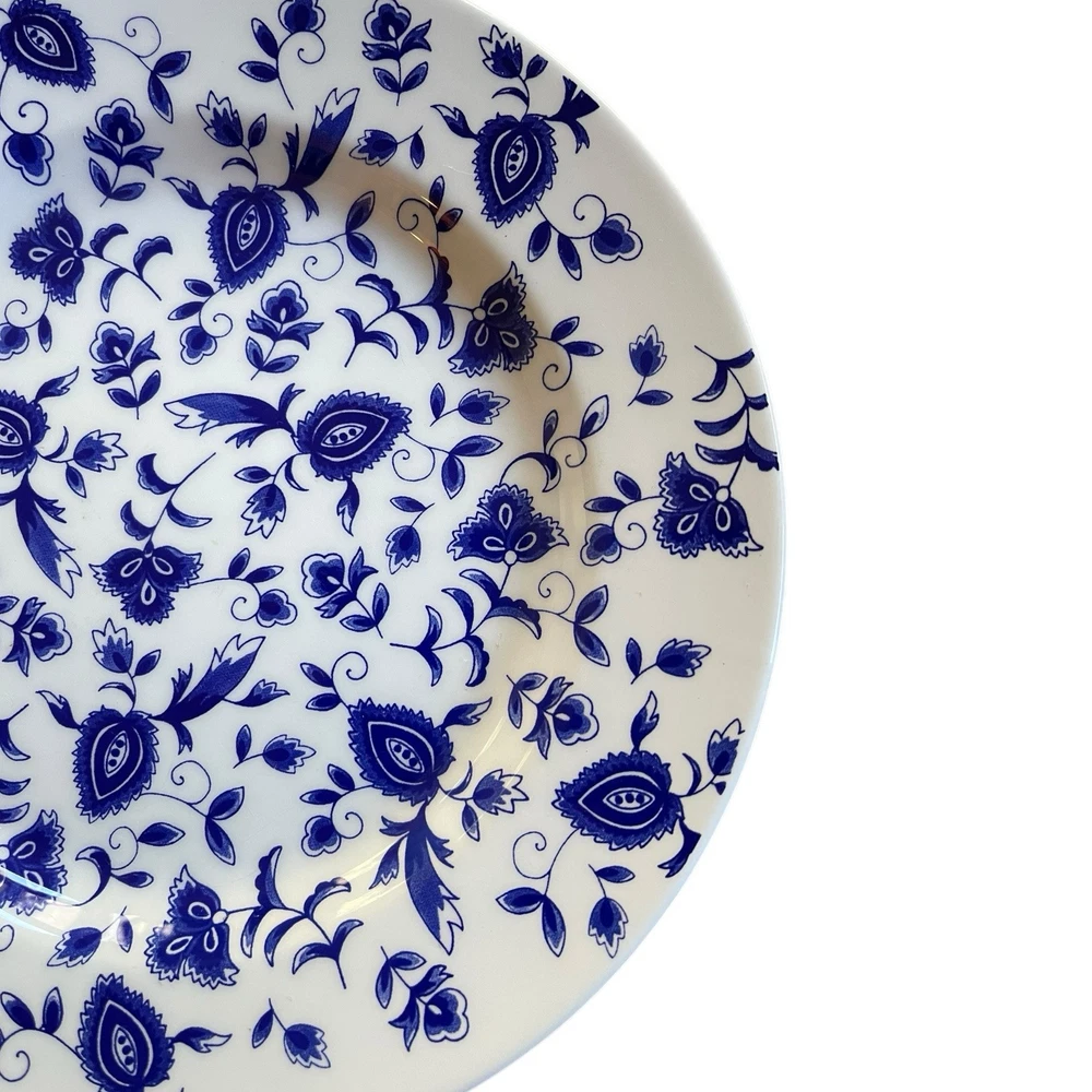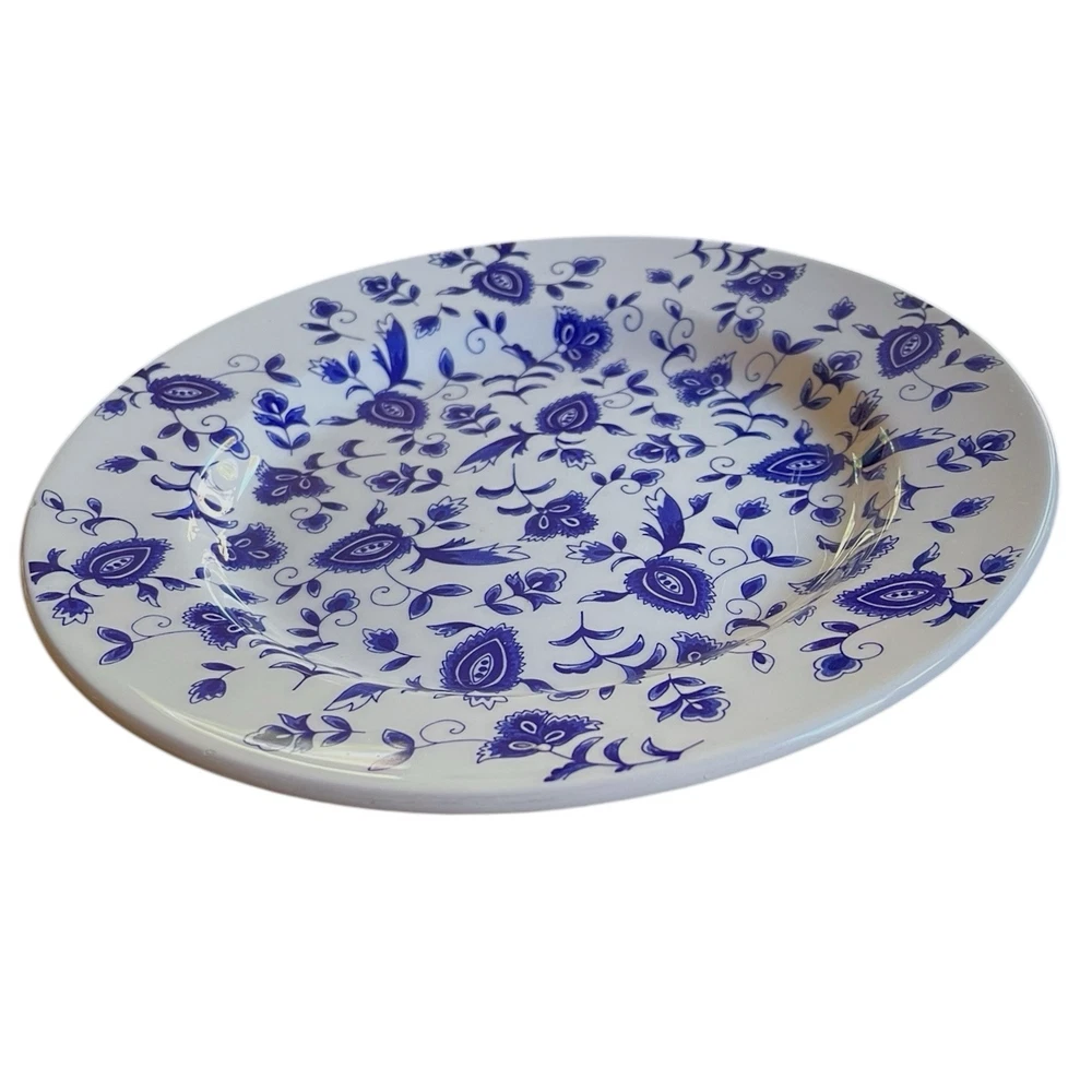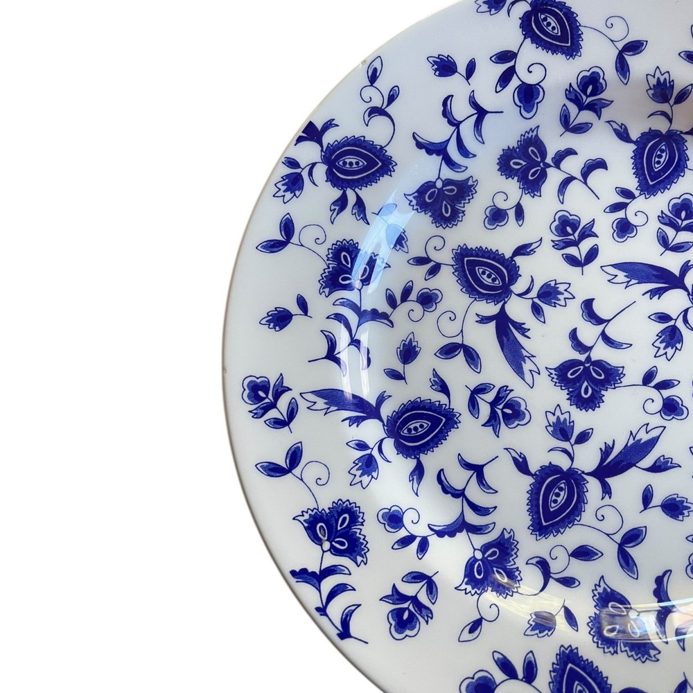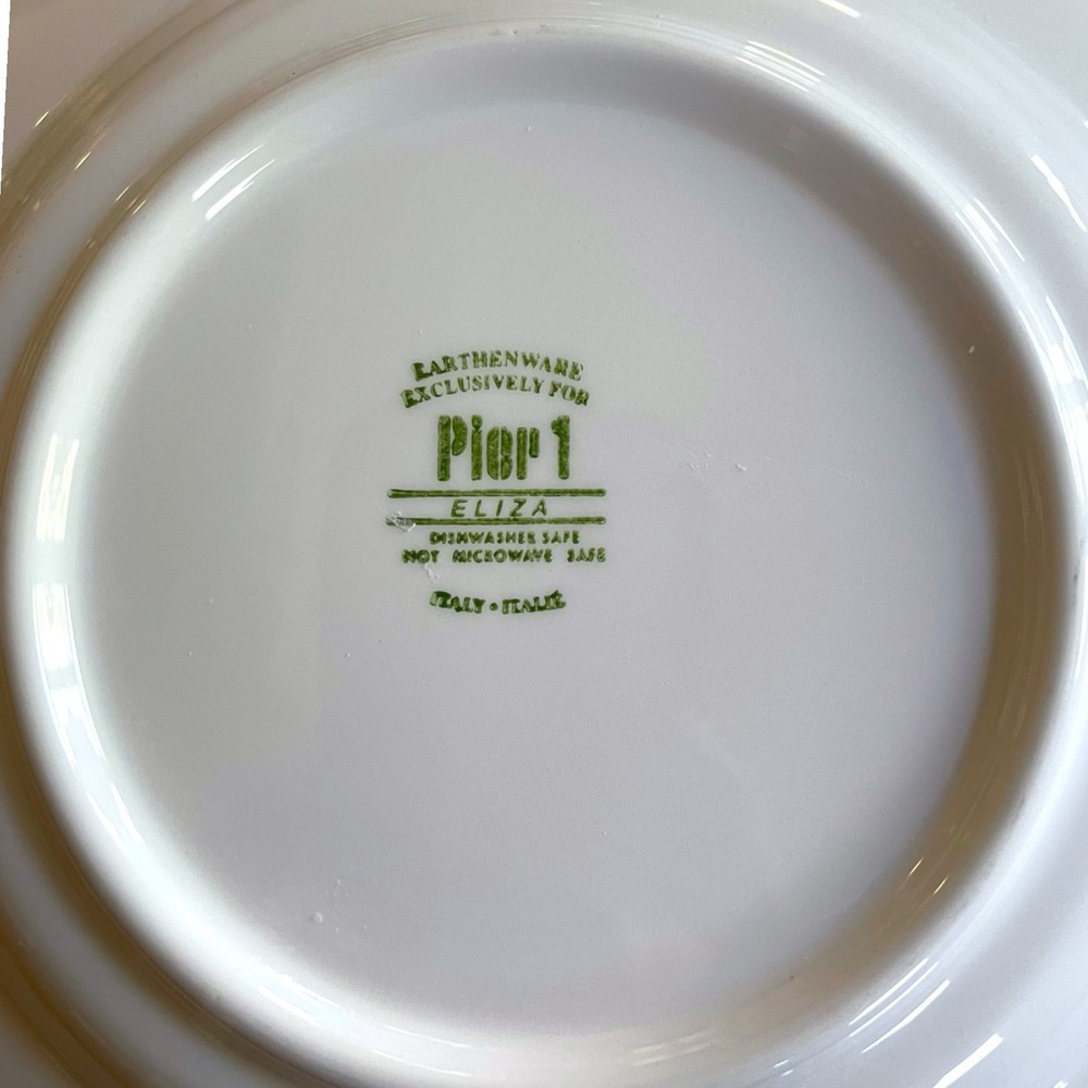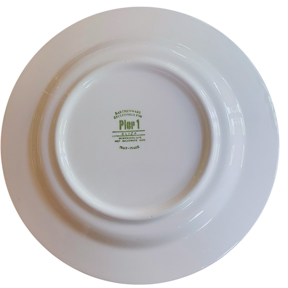 Enhance your table setting with the elegant “ELIZA” Blue & White Floral Earthenware Dinner Plate by Pier 1 Imports—a timeless piece made in Italy. Measuring 10.25” in diameter and both dishwasher and microwave safe, this plate is perfect as a replacement piece or a stunning addition to any collection. In excellent used condition, it shows no signs of wear, chips, or cracks. For full transparency, there are tiny flea bites on the bottom (see photos), but they are barely noticeable and do not affect the beauty or display of this charming piece. Don’t miss the chance to bring this classic, high-quality dinner plate into your home! .