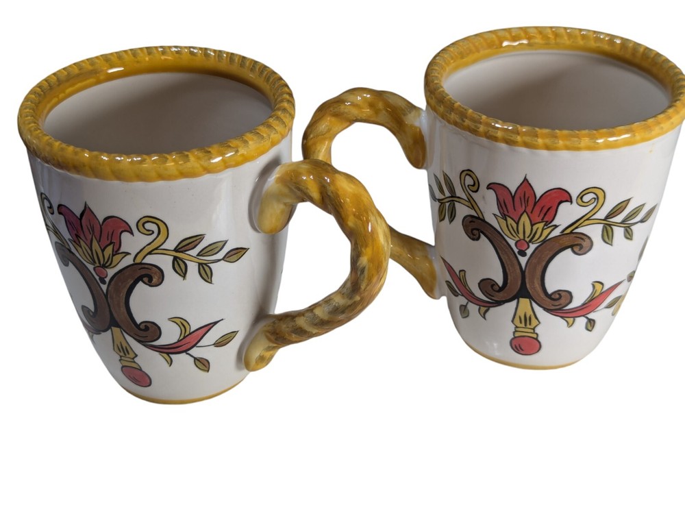 Pier 1 Earthenware Mugs - Oralia Design - Set Of 2. Condition is Used. Shipped with USPS Ground Advantage.