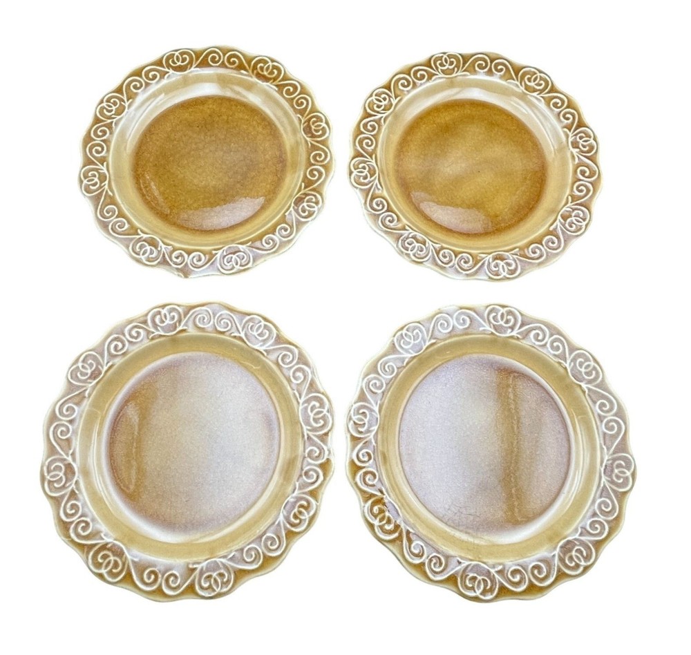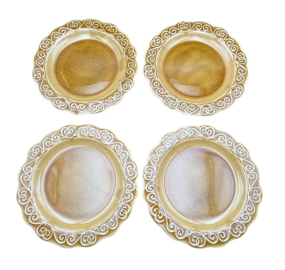 These plates are the fancy dinnerware equivalent of a cozy sweater. They're stylish enough for special dinners but humble enough for leftovers. • Diameter: 8.75 inches • Earthenware • Swirl design / Crackle Glaze • Hand wash recommended • Not microwave safe Yes, I will bundle orders! Please message me so I can ensure you get the best shipping price! Please reach out if you have any questions. Thank you!