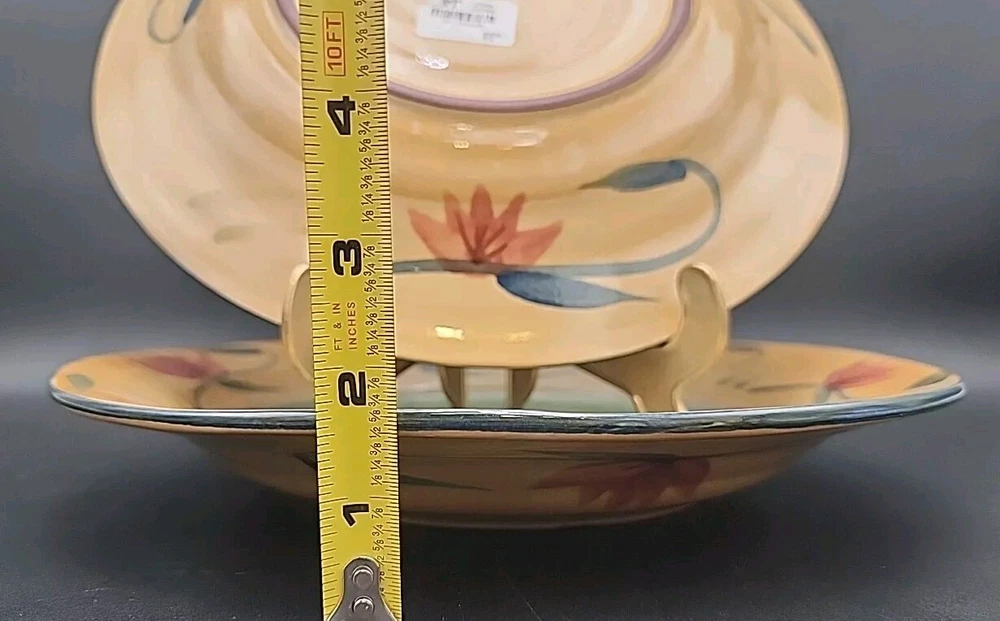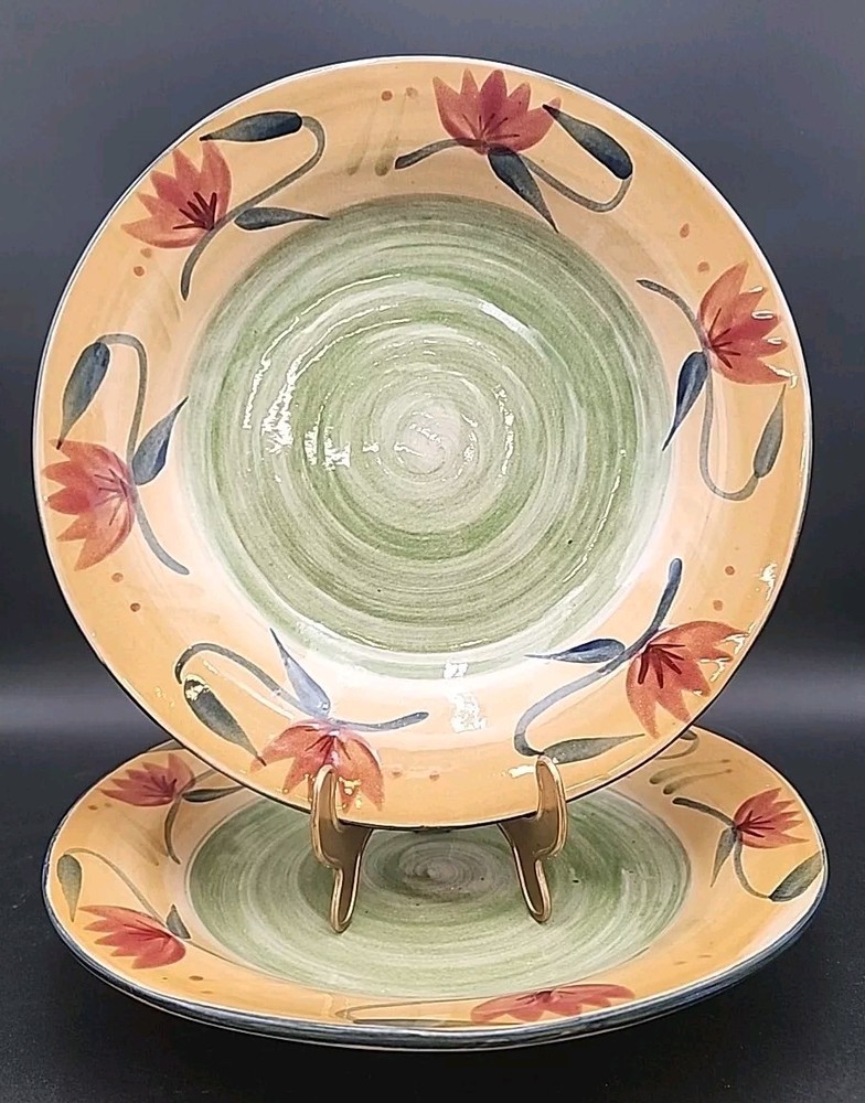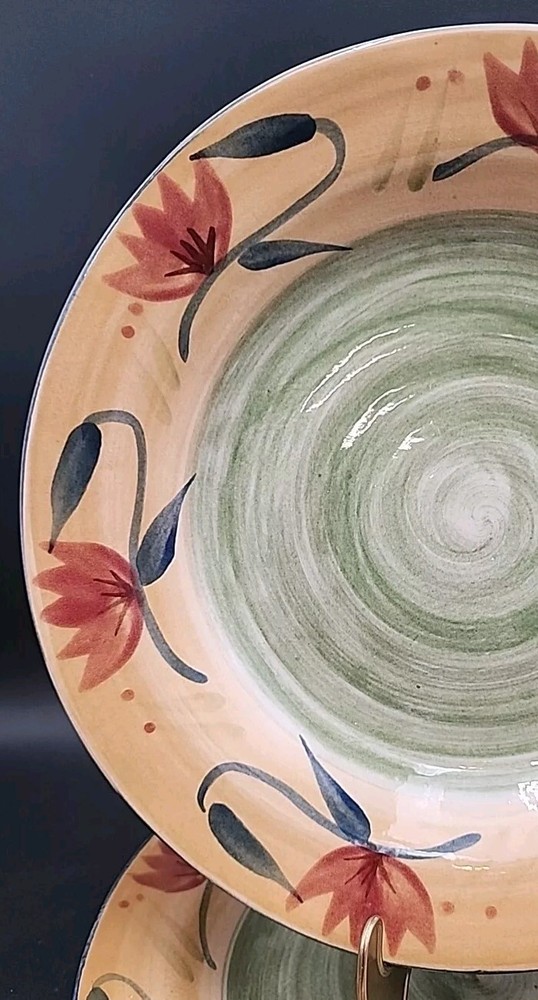 These two Beautiful Pasta bowls are in excellent condition with no chips or cracks. These still have the price tags on them. This set is new but has very very light scratches from stacking but very minimal and you can not see unless you are really looking for the. Please see ALL pictures for more details and measurements on this Beautiful set.