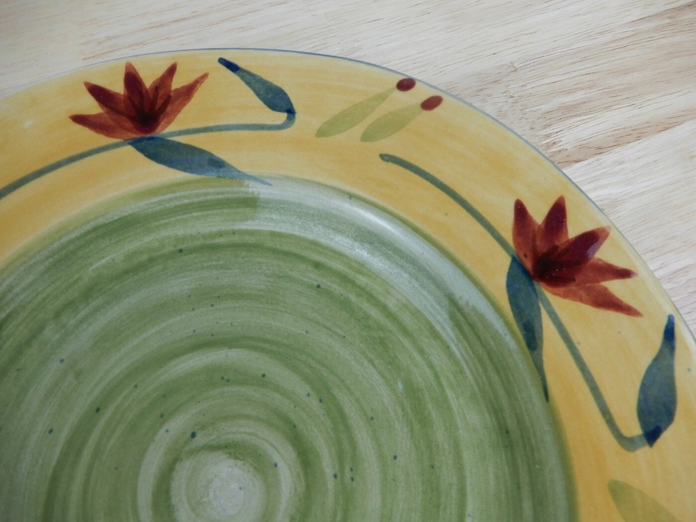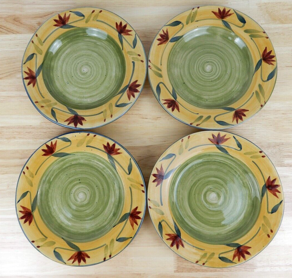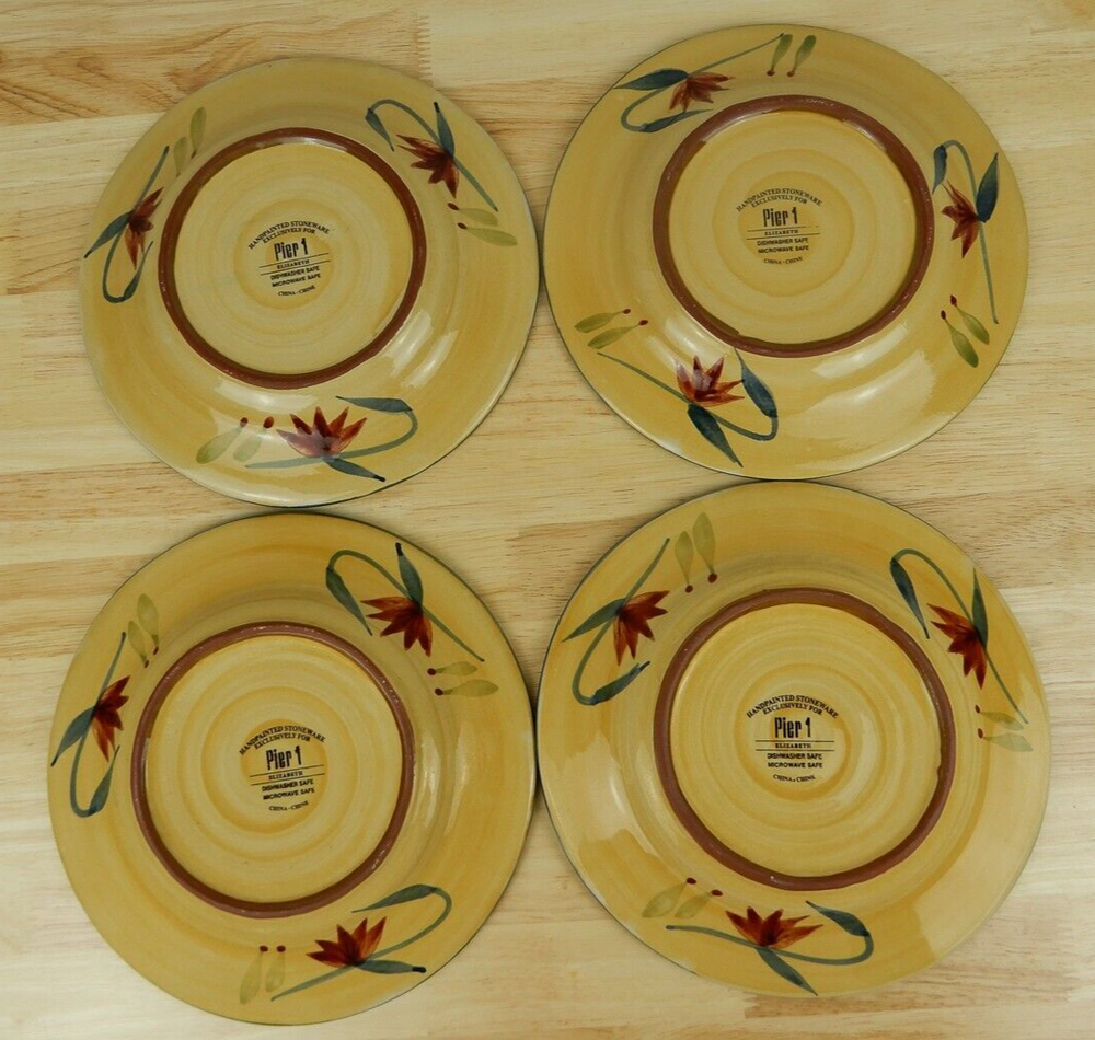 Set of 4 Pier 1 Imports Elizabeth Salad/Dessert Plates Handpainted Stoneware 8 1/4"" Green/Yellow Floral Discontinued Pattern 2005-2010 Good clean pre-owned condition. No chips, cracks, or crazing. May have some light surface scratches from normal use and stacking. See Photos. Ships same day or next day. I’m happy to answer any questions you may have so feel free to message me. Thank you for visiting my EBAY store and supporting small business.