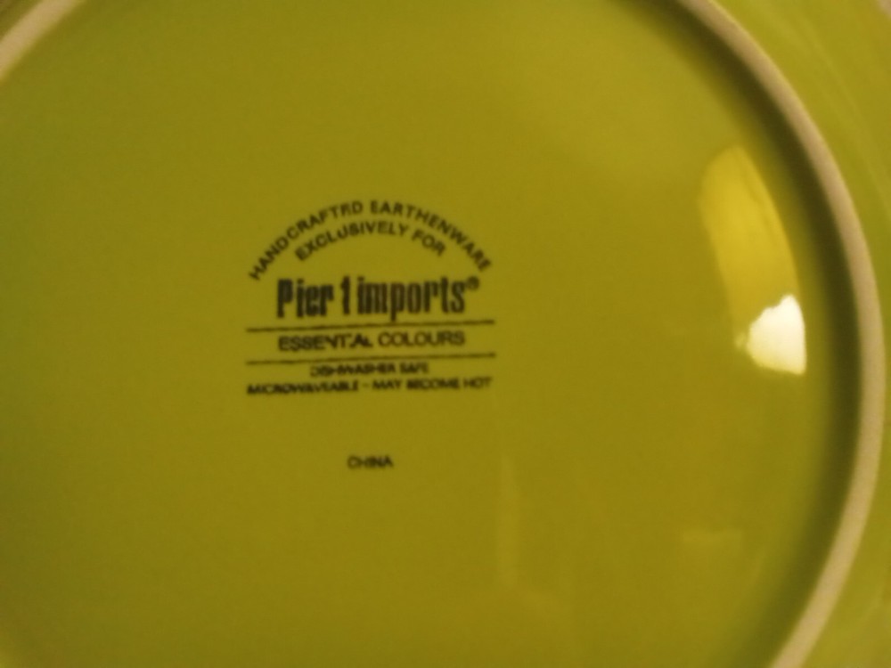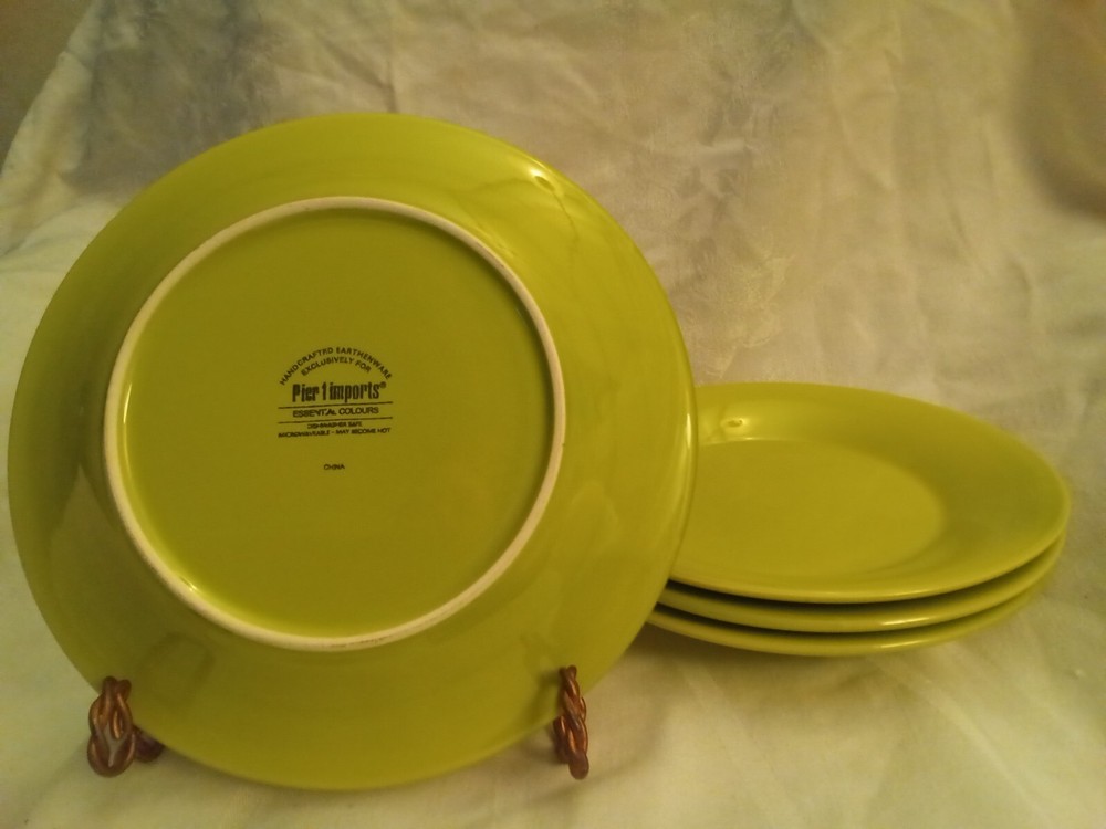 Elevate your dining experience with the Pier 1 Essential Colours Green Salad Plates, a set that brings a touch of handcrafted artistry to your table. Each plate in this collection showcases a vibrant green hue, perfect for accenting any salad or dessert course. Crafted from high-quality ceramic, these plates are both dishwasher and microwave safe, ensuring both durability and convenience.The round shape and hand-painted design embody a contemporary style, making them a versatile addition for all occasions. These plates, measuring 8.5 inches, are part of the Pier 1 / Essentials product line, and while the exact country of origin remains a mystery, their alluring charm is undeniable. Whether you're hosting a dinner party or enjoying a quiet meal at home, these salad plates are sure to impress. New without tag. We sell NEW and USED items. We describe and take pictures of all items to the best of our knowledge and ability. PLEASE ask any questions you may have BEFORE bidding. Returns not accepted. THANKS FOR LOOKING!