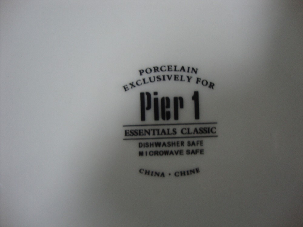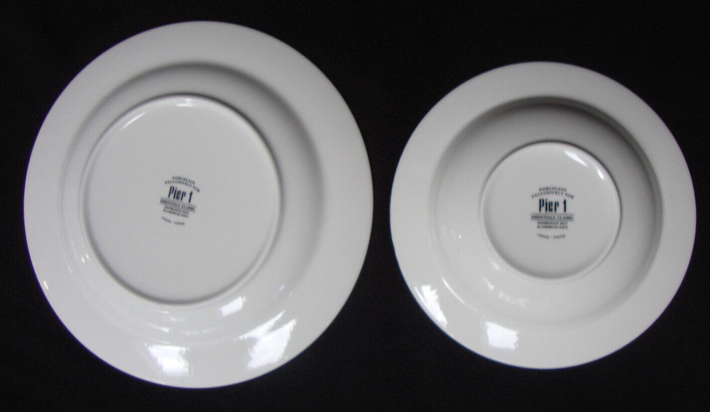 Pier 1 Essentials Classic White Dinner Plate and Soup Bowl SIZE: Plate: About 11" diameter. Bowl: About 8 1/2" diameter. CONDITION: Great preowned condition. Very mild wear, looks barely used.