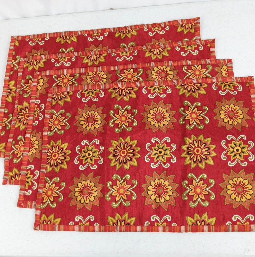 Pier 1 Estrella Placements Set/4 Floral Stripe Red 13" x 19" Fabric Reversible In very good pre-owned condition. Please see photos for the condition details. No stains or flaws. Smoke free home.