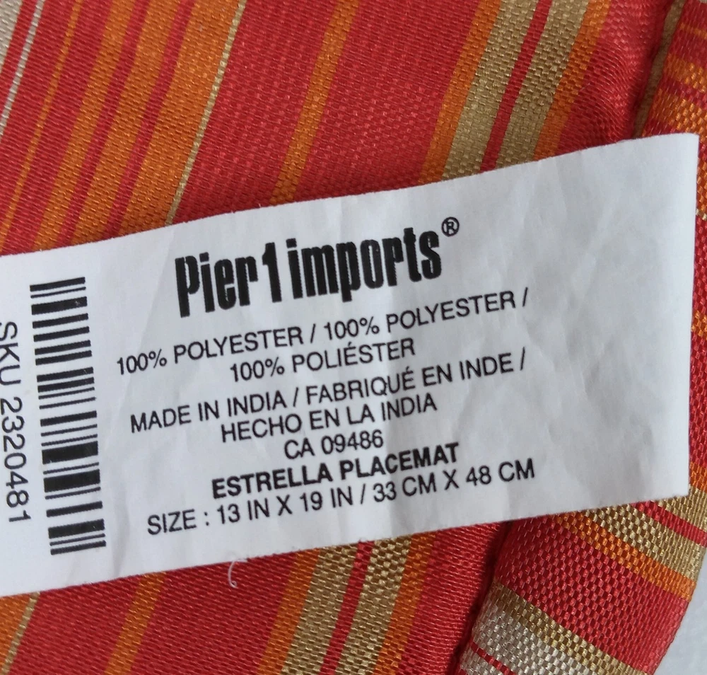 Pier 1 Estrella Placements Set/4 Floral Stripe Red 13" x 19" Fabric Reversible In very good pre-owned condition. Please see photos for the condition details. No stains or flaws. Smoke free home....
