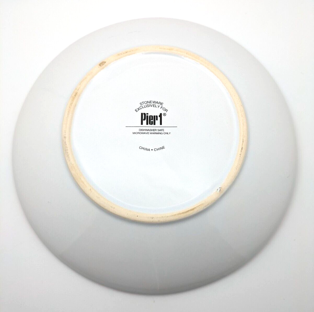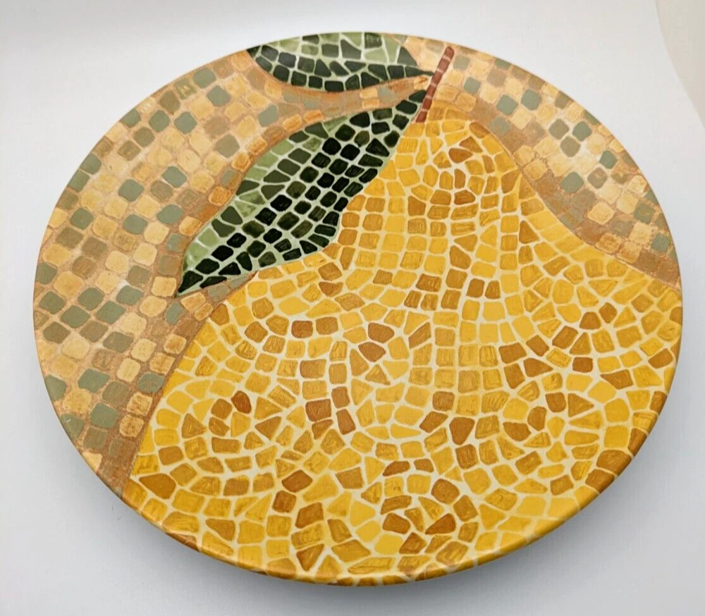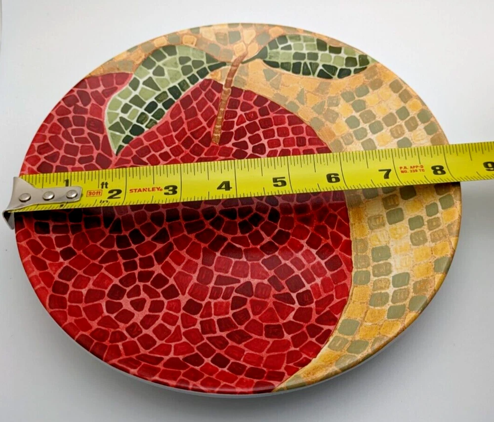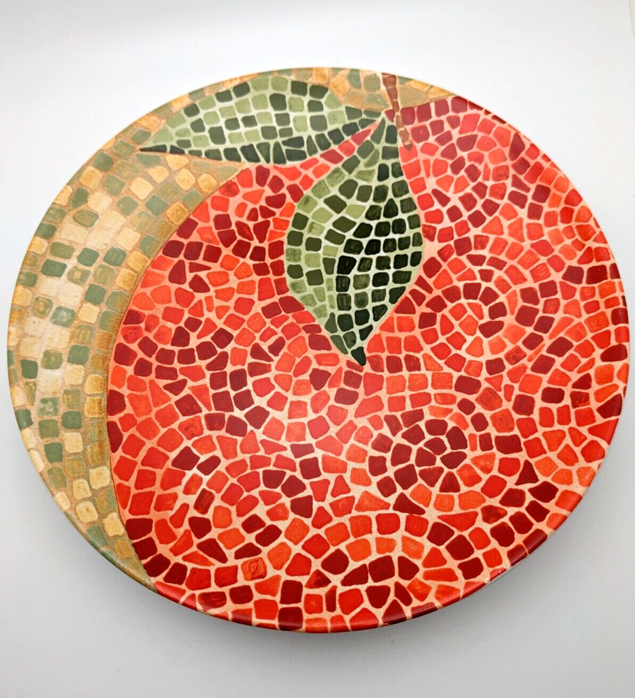Pier 1 Fruit Mosaic Look Salad or Dessert Plates Apple Orange Plum Pear 4 Piece Set Diameter 8" Excellent Condition. No chips or cracks. Pretty! Please see pictures as they are part of the description.