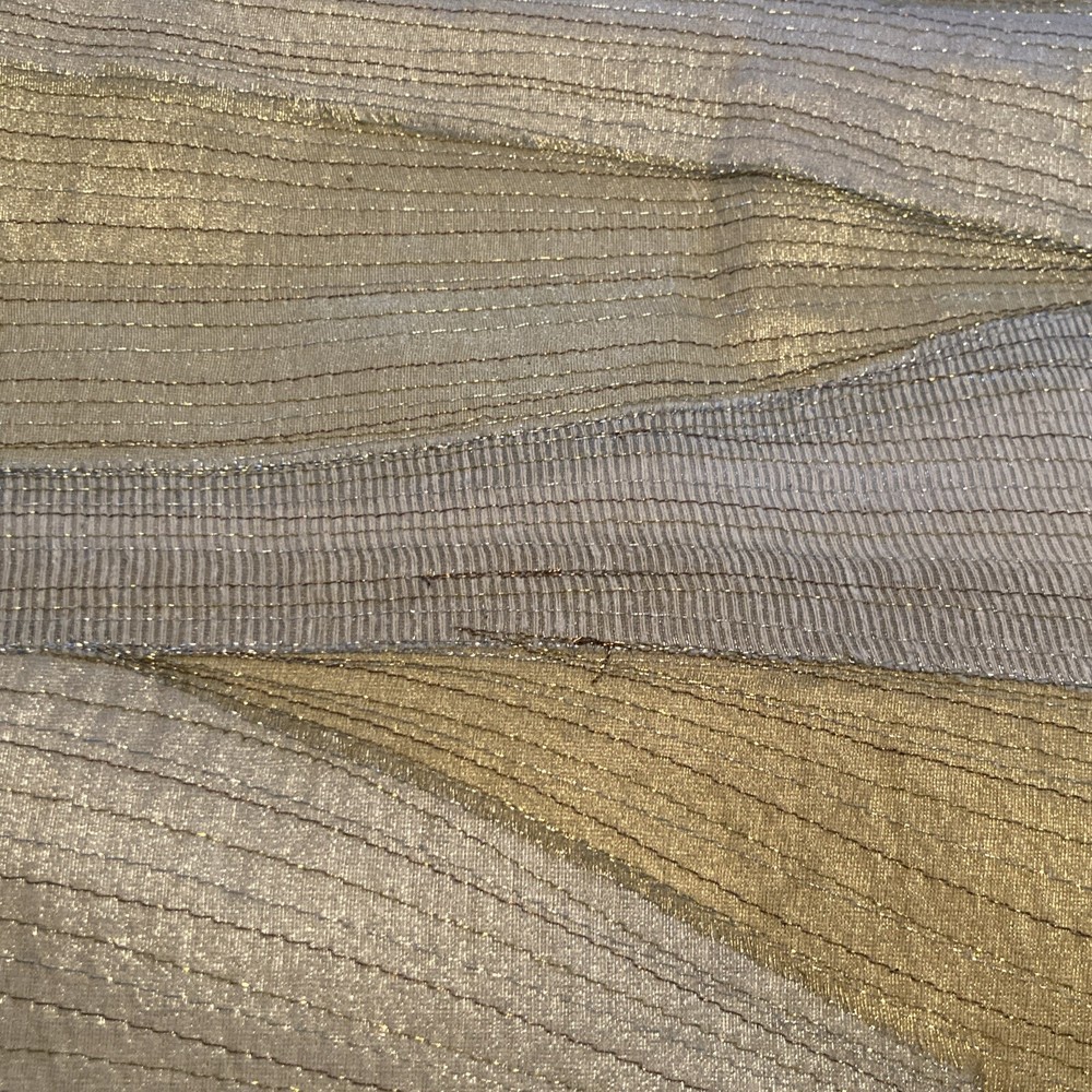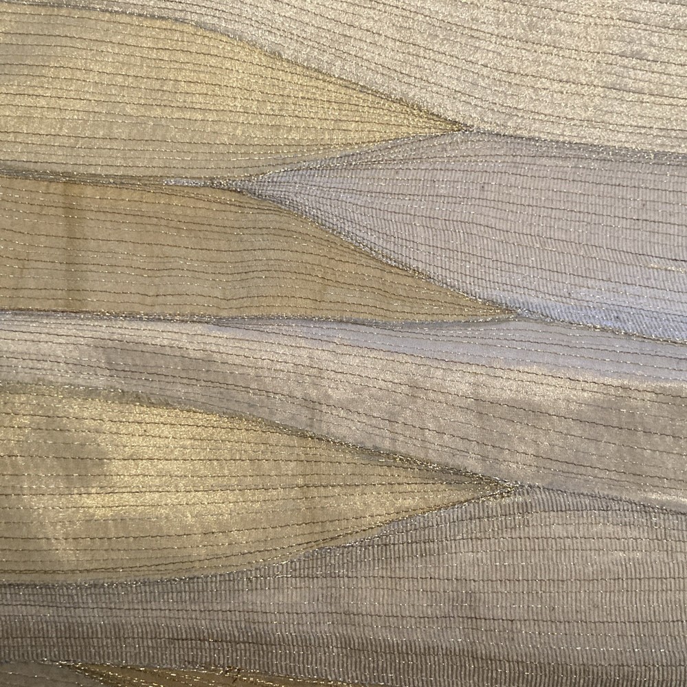 Pier 1 Glitter Wave Metallic Embroidered 14" x 72" Table Runner Ivory And Gold Metallic, polyester, nylon, silk Lined backing is 100% cotton