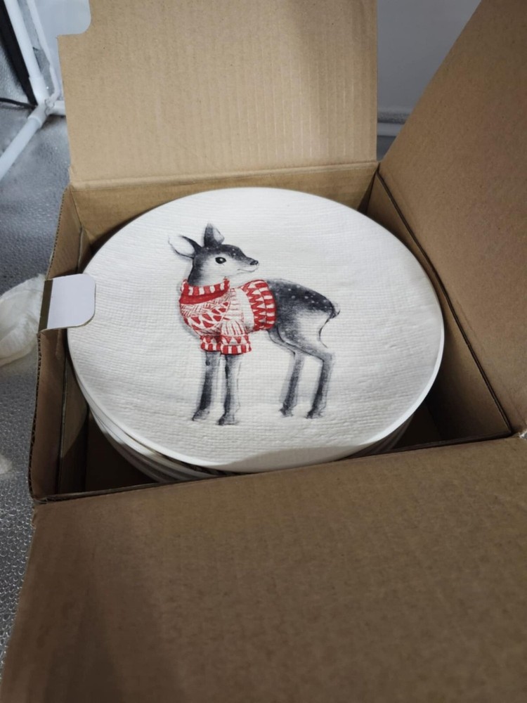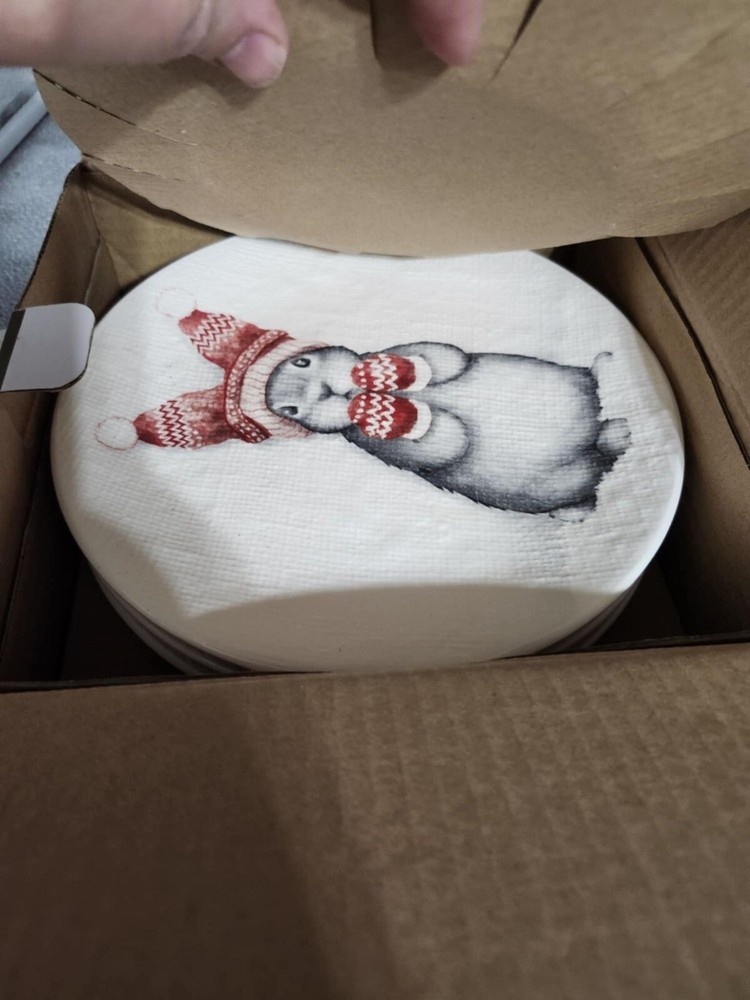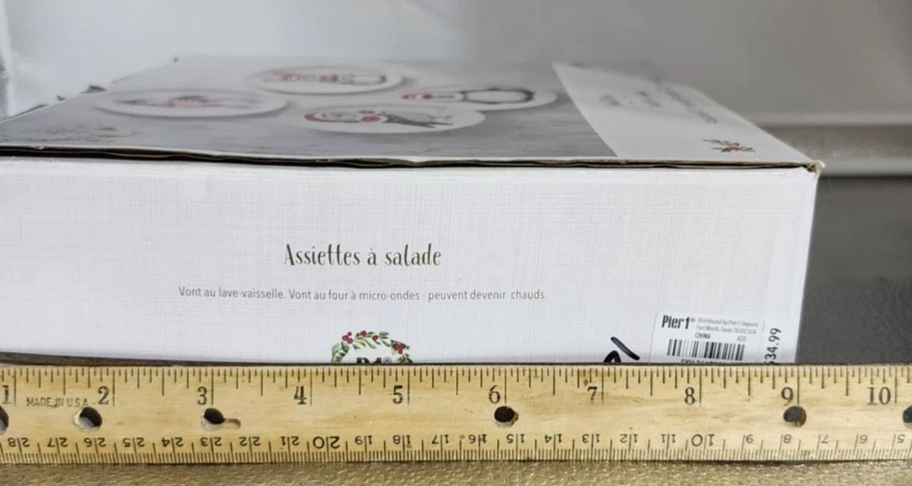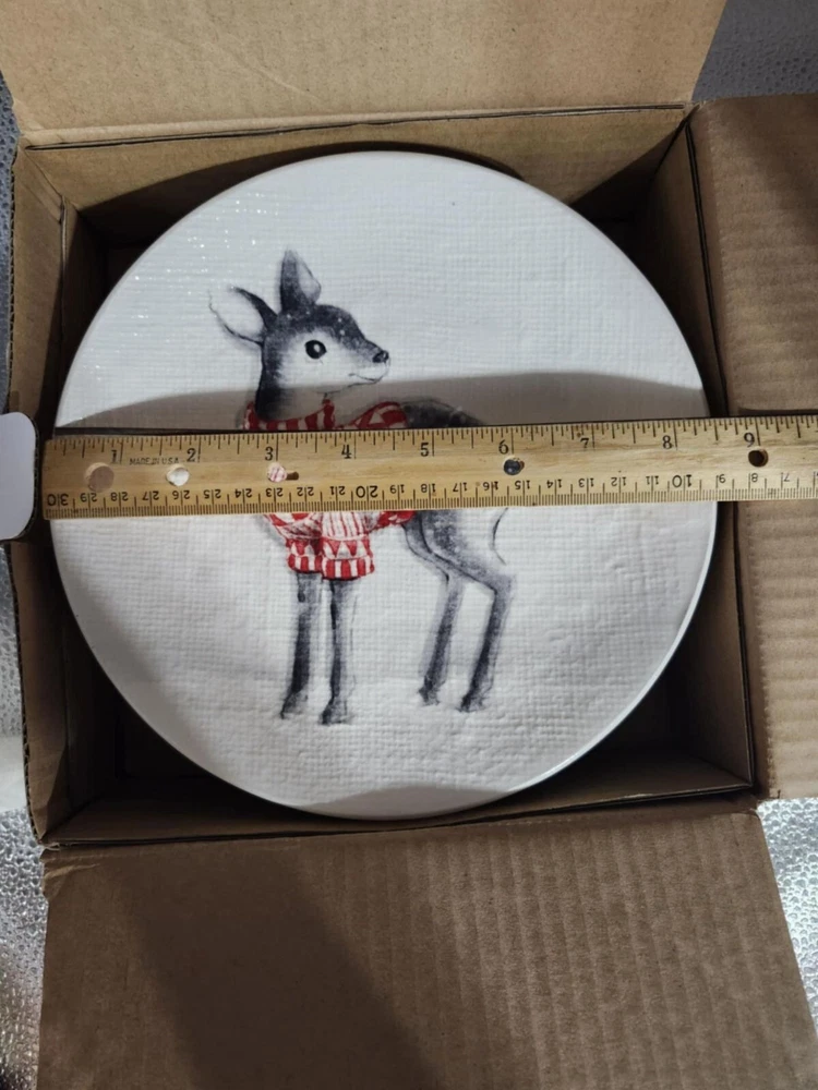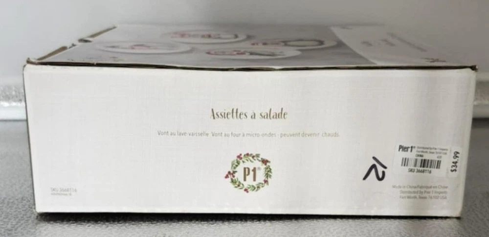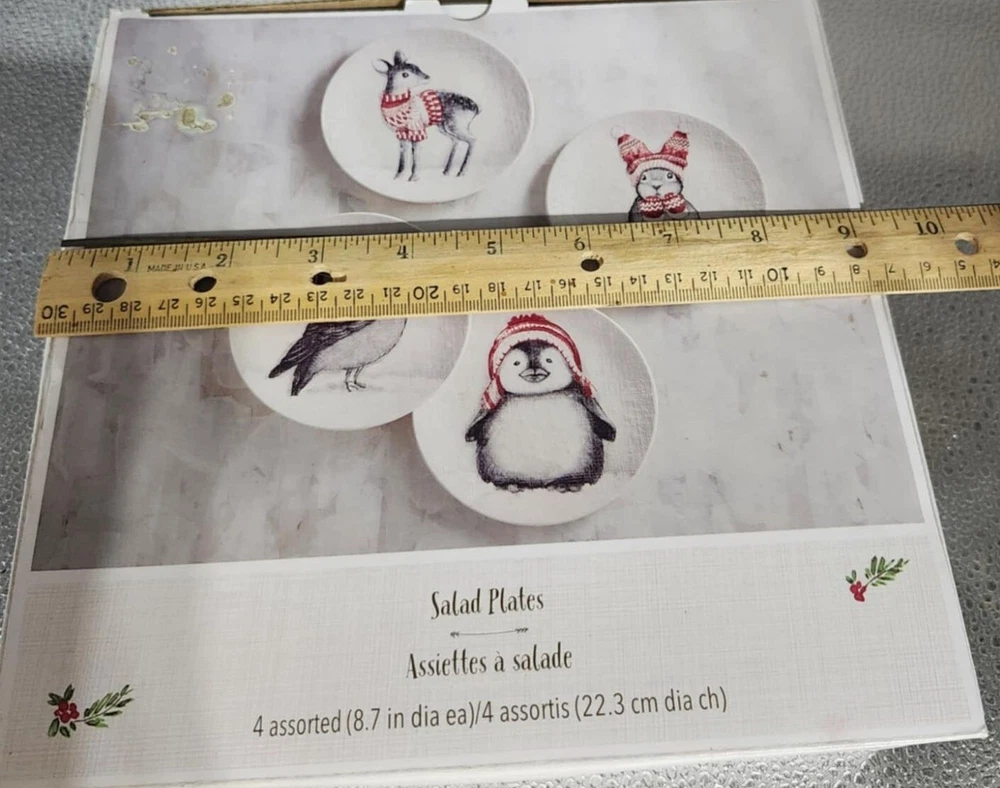 Pier 1 ceramic salad plates feature festive animal illustrations and a durable finish, suitable for both everyday use and special holiday gatherings. • Set includes 4 assorted designs • Made from high-quality ceramic • Microwave and dishwasher safe • 8.7 inches in diameter • Festive holiday-themed illustrations
