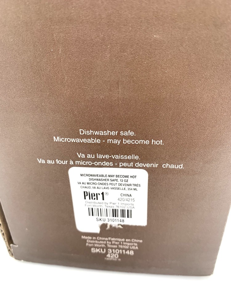 Pier 1 Import His and Hers Coffee Mugs Set NIB Gold Tone Design. Box P13...