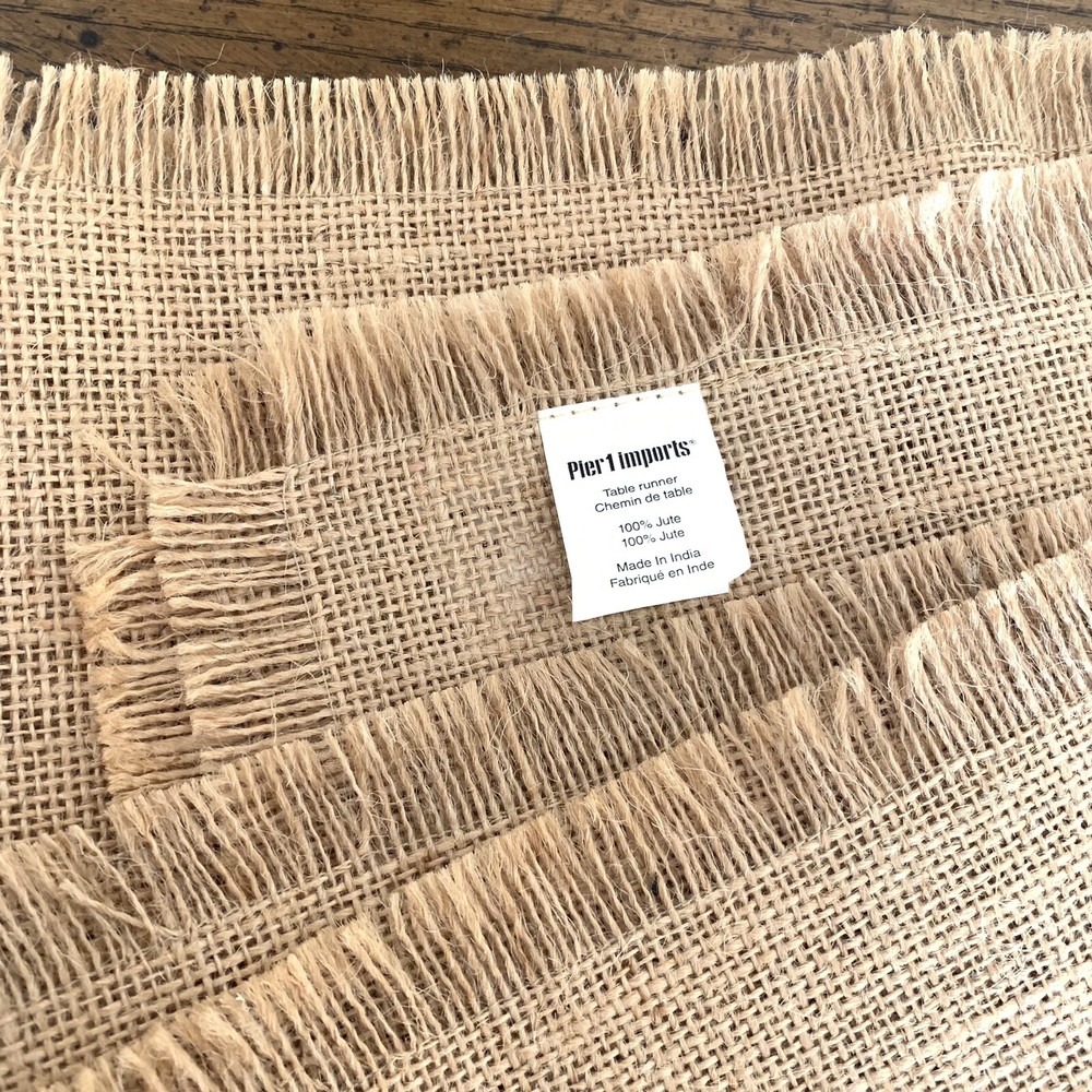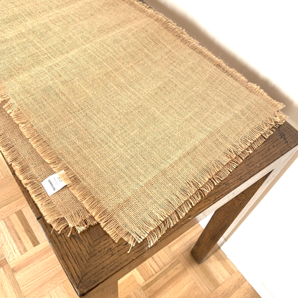 Pier 1 Imports 100% Jute Woven Table Runner Natural / Tan with Fringe 14" x 70" Made in India. Very good condition, light wear, natural markings, see all photos.