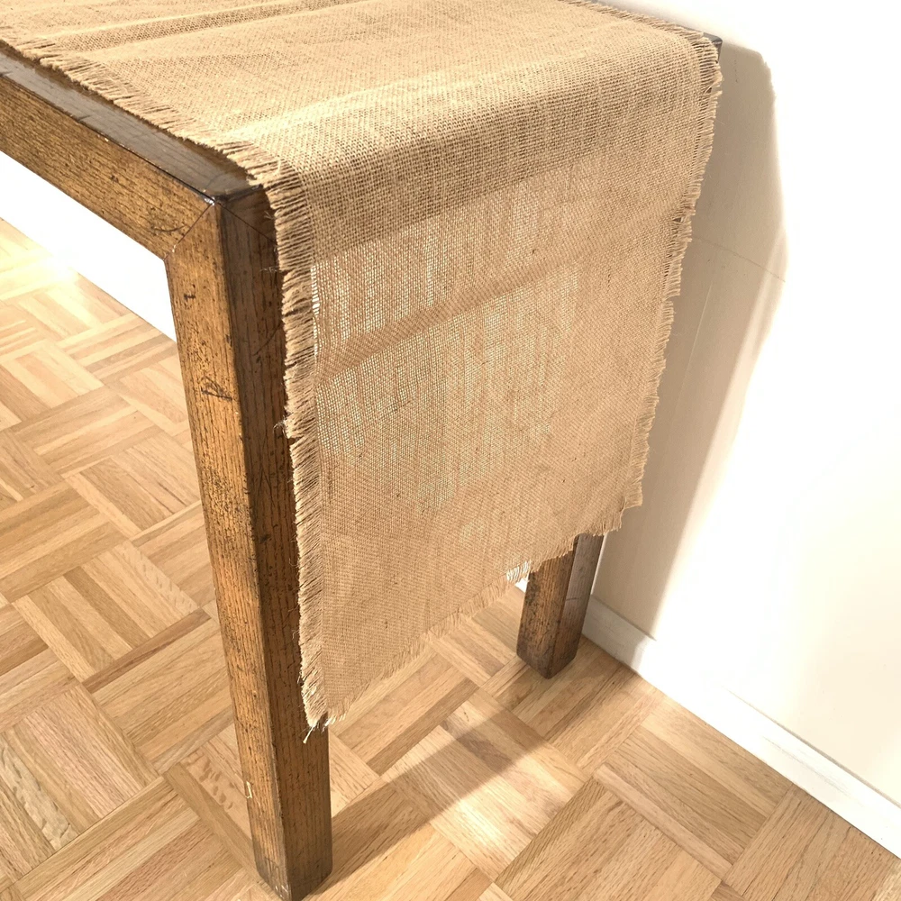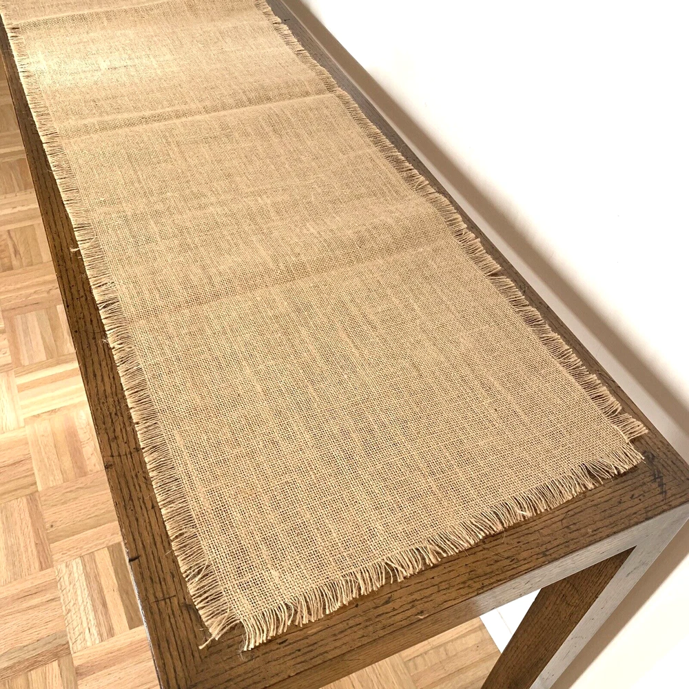 This jute table runner adds a warm, rustic charm to any table setting! The natural tan color and woven texture give it a cozy, earthy feel, while the fringe details add a nice boho touch. It’s sturdy, well-made, and the slight wear gives it character—perfect for farmhouse or coastal decor. Love how it brings a natural vibe to my dining room!