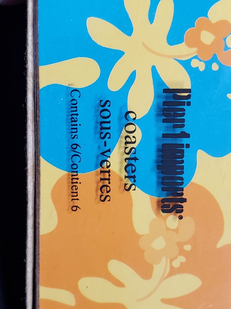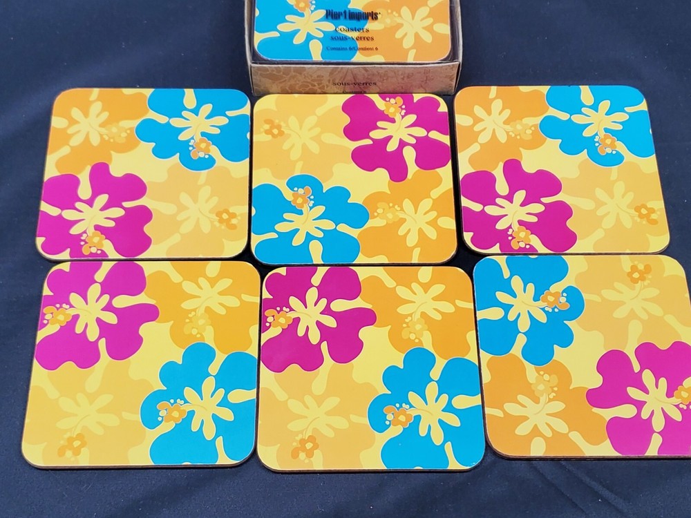 Pier 1 Imports 12 Colorful Floral Design "Sous Verres" Coasters. The first 6 pack is new in the original package. The second is opened but looks to be unused. L&M Landing Store Terms. We make every attempt to show our listing as they truly are. If the pictures or descriptions are not clear, please contact us. Positive Feedback is very important to us. We strive to always have repeat customers that have a great experience shopping at our eBay store. If for any reason you are not completely satisfied with your purchase, please contact us and we can resolve the issue together. Buy Now : Payment is due immediately Auctions : Payment due within 2 Days Combined Shipping: We do offer combined shipping for multiple purchases. All overpaid shipping costs will be refunded at the time of shipping. Shipping Promotions: We offer to cover shipping charges on larger orders, that amount may change and is indicated in the listings. This applies for the lower 48, if you are in Alaska, Hawaii, Puerto Rico or other locations shipping charges will be determined at the time of purchase. This also may not apply if an offer is accepted. International Shipping: We are a member of the eBay Global Shipping Program in order to accommodate customers in other countries. Shipping Time: Your item will be shipped the next business day after cleared payment has been received. You will receive shipping notification through eBay shipping when your item is shipped. PLEASE be sure your shipping address is correct. Most of the items listed come from estate sales, auctions, garage sales, consignments and/or private sales. As such, I normally don't know the history of the item nor how it was stored.