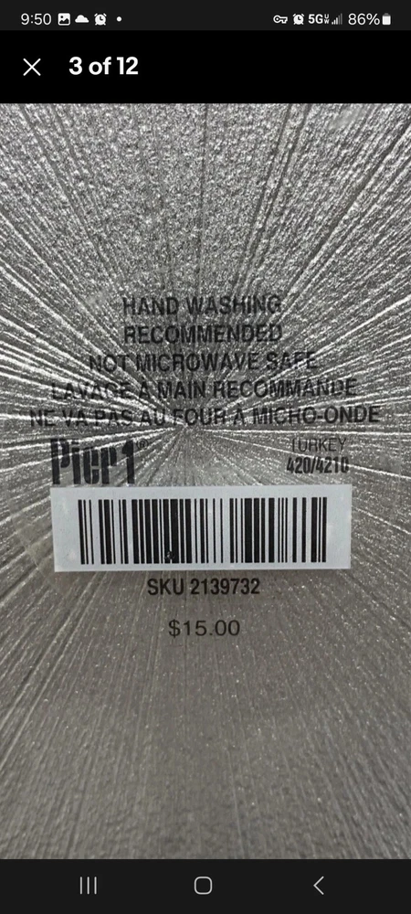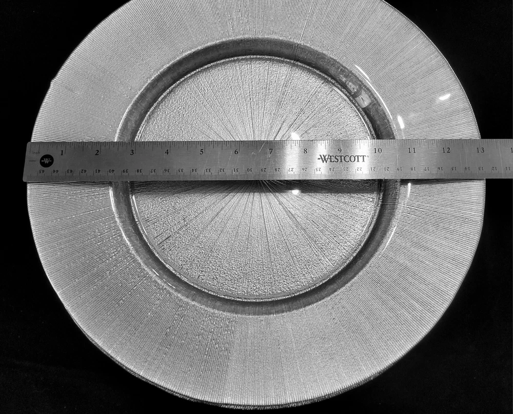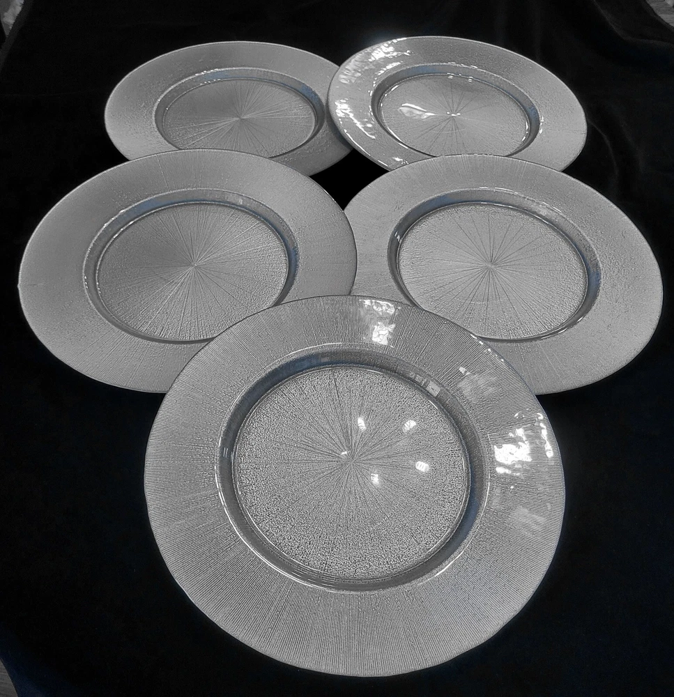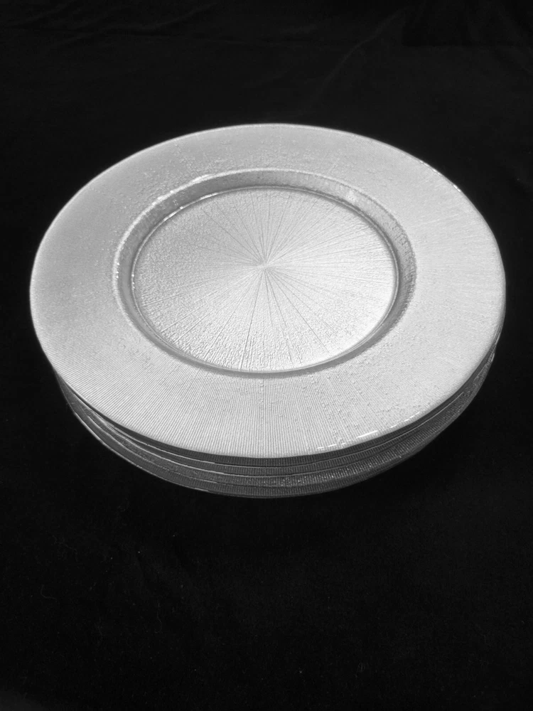 Hello! Thank you for shopping my site! Today, you are viewing a Pier 1 Imports Charger Plate Silver 13-Inch diameter. The charger adds a glamorous appearance. Each piece is a unique work of art and brings a dramatic look to your table setting. They have a Silver hue and a stunning starburst design. Made of glass, is hand gilded, and is perfectly imperfect! Pre-owned, gently used. Food safe for hot or cold food. No chips or cracks. Measure approximately 13". Hand washing recommended. Not safe for microwave use. "Food safe" charger plates are not only great for use in their traditional sense, placed beneath dining vessels, but they also double as appetizer or dessert trays. They're great for use with fresh fruit or cut fresh vegetables, meat and cheese platters, and more. Charger etiquette listed below I will combine shipping. Message me if you are interested in more then one plate. Please check out the pictures. Click on them to make them bigger to see the item condition in detail. You will receive the same exact item that is pictured and described. Sorry for any glare or reflection on shiny surfaces. Please ask any questions or concerns you may have as I want you to be very happy with your purchase. I have been a member since 2018 and have sold over two hundred items on EBAY, so please buy with confidence. I am sometimes away for work, which is why I have a 6 day handling time . Most of the time your items will be mailed out much sooner. This is just to cover the times I am away. Shipping and Packing: We provide excessively careful packaging. You can expect courteous service at all times. Item will be shipped to the address specified by buyer. I will pack and ship only to the address recorded. Please note: We are not responsible for service transit time. This information is provided by the carrier and excludes weekends and holidays. Transit times may vary, particularly during peak periods. I use recycled package materials to cut down on waste. **ARE WE WRONG? We've been selling vintage goods for a while and enjoy learning as we go. That doesn't mean we don't make mistakes. There's so much to know about this stuff! If you know that we are wrong about an item, please take the time to let us know. We're humble. We'll can it, we'll learn and we'll correct our listing.** **Check out my other listings for many more books and other collectibles being offered! Thank you for looking. I appreciate your time and am thankful for your business!** What’s the proper etiquette for using a charger plate at my table setting? When preparing the table for your dinner, occasion, or event, you should place the charger plate where the entrée plate belongs in a proper table setting. There should only be one charger plate per place setting, and silverware should be positioned in the same way as it would if a charger plate was not present. Once it comes time to serve, soup bowls, salad plates, or entrée dishes are presented to guests and set upon the charger plate. When is it appropriate to take the charger plate off the table during a meal service? Deciding when to clear your table of all charger plates depends on the type of venue you have. Some restaurants have charger plates solely for decoration, and they are removed before guests are served any food whatsoever. Traditionally, charger plates are used for presenting soups, salads, or appetizers and are removed before the main entrée dish is served. However, many restaurants today leave charger plates at the table setting throughout the entire meal. Rule of thumb is that charger plates should always be removed from guests’ place settings before dessert is served!