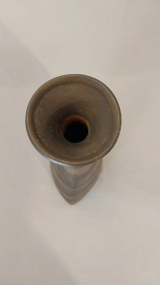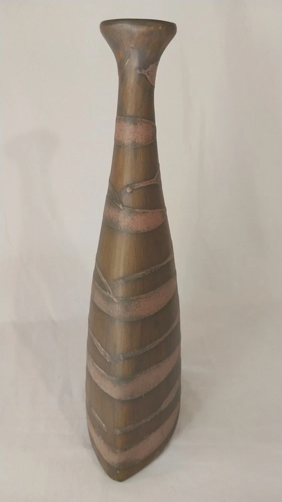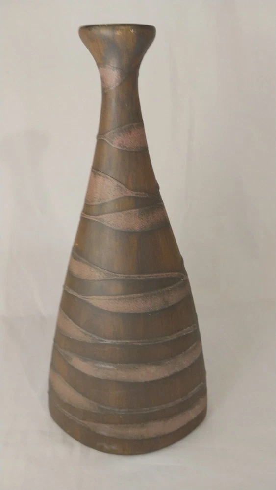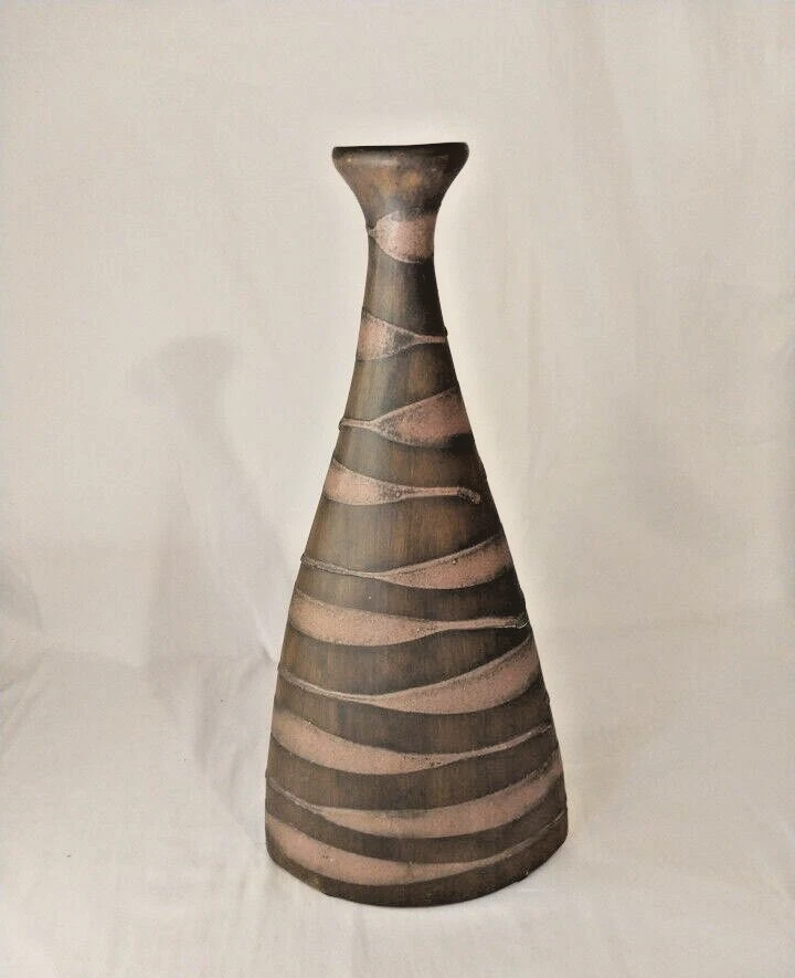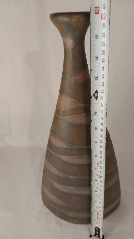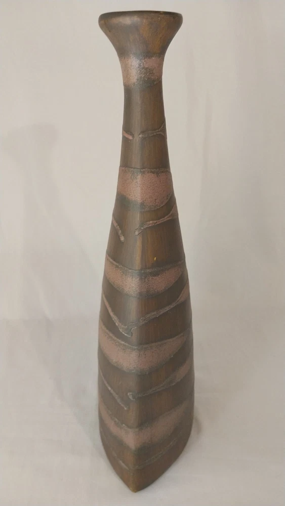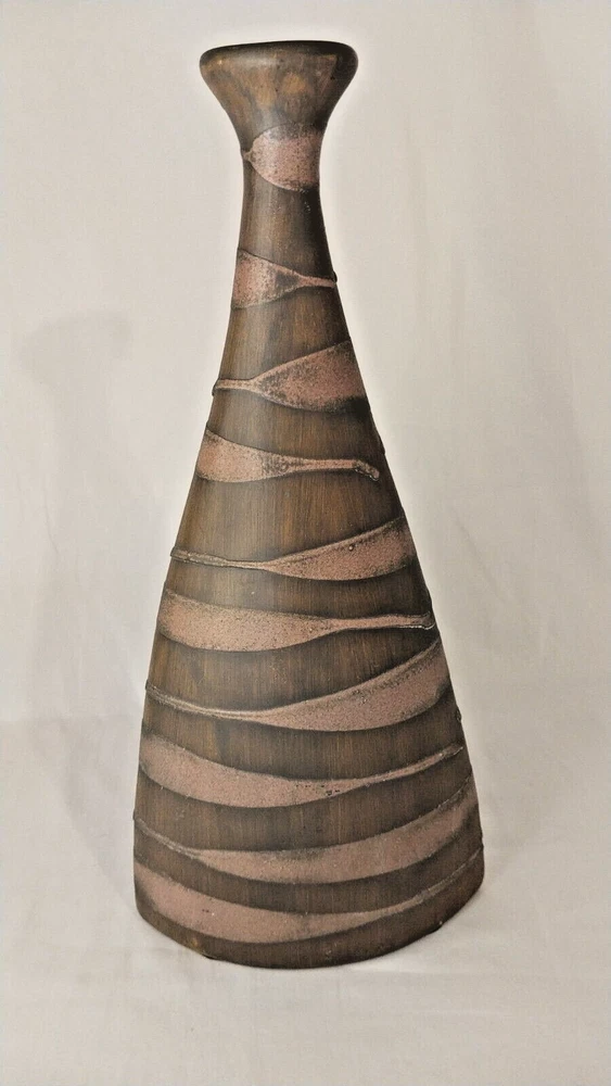 Add a touch of elegance to your home decor with this stunning 16" vase from Pier 1 Imports. Crafted from high-quality clay, this vase features a beautiful brown color and an all-over pattern that is sure to catch the eye. The art deco design is perfect for those who love flowers and gardening, and the glossy finish adds a touch of sophistication to any room. It is a vintage piece and is not signed, but its quality and design speak for themselves. Whether you're looking for a decorative item for your home or a unique addition to your collection, this Pier 1 Imports vase is a must-have. SEE ALL PICTURES