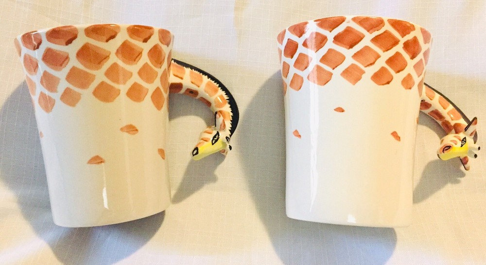 Pier 1 Imports 2 Ceramic Giraffe head Design coffee mugs hand painted Stoneware. Condition is Used. No chips or scratches. Beautiful mugs. Shipped with USPS Priority Mail.
