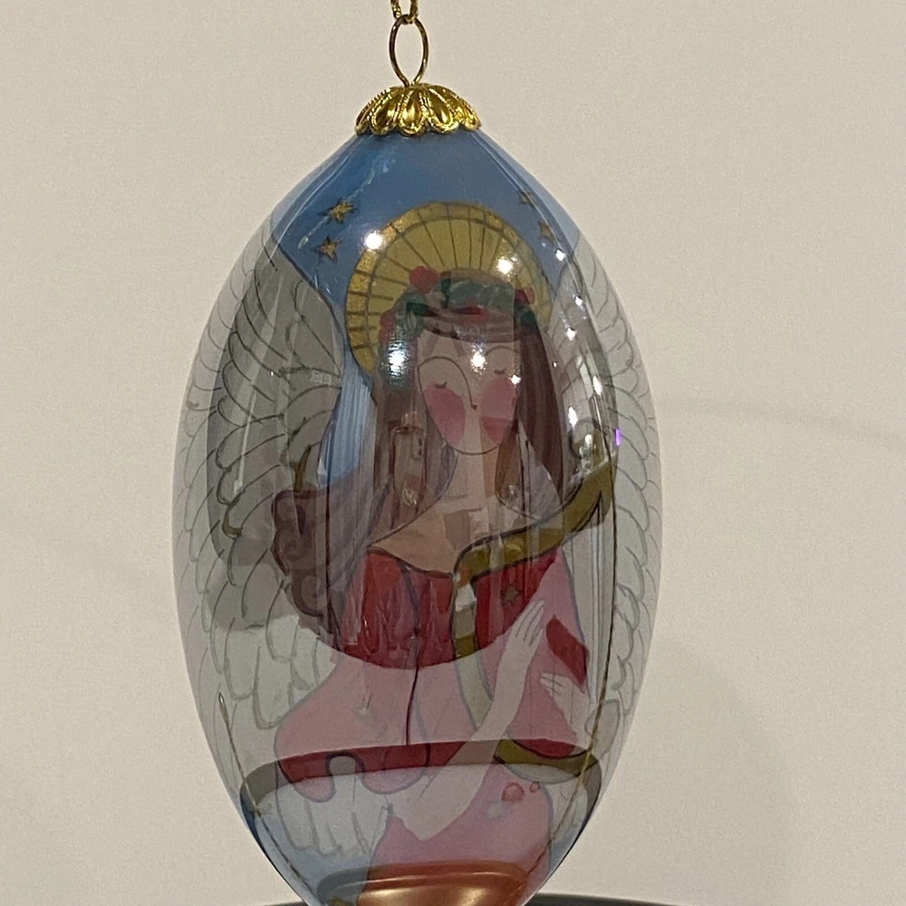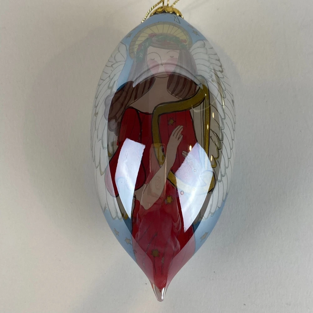 Add a touch of elegance to your Christmas tree with this limited edition Pier 1 Imports 2007 Angel with harp Li Bien glass teardrop ornament. The ornament features a beautiful hand-painted multicolor design and is made of high-quality mouth-blown glass. It is perfect for hanging or displaying as a decorative piece. This angel ornament is an original piece designed by a skilled artist and is part of the Pier 1 Imports ornaments collection. It is medium-sized, measuring 4.5 inches in height, and is suitable for over 18 years old recipients. Get this unique and stunning ornament to add a touch of charm to your Christmas decor. Check out our Store for more wonderful vintage Christmas decorations! Come on over and visit our store for more beautiful vintage Christmas decor! Please note that fragile items will be packaged very carefully to avoid damage during transit, so this will be reflected in the shipping costs. Select your preferred shipping option during the check out process.