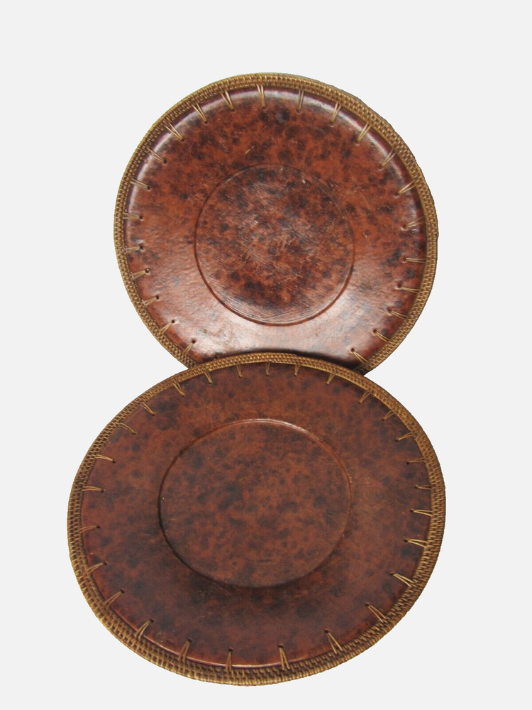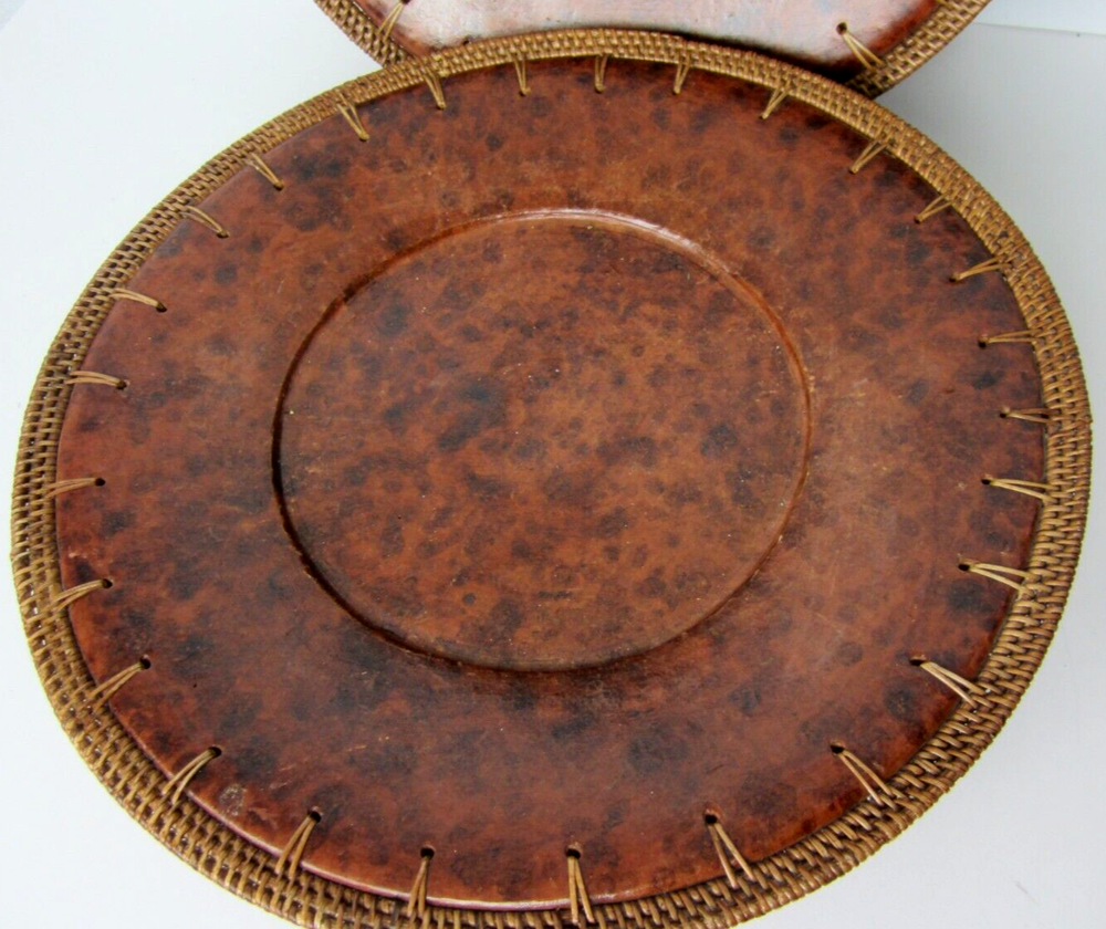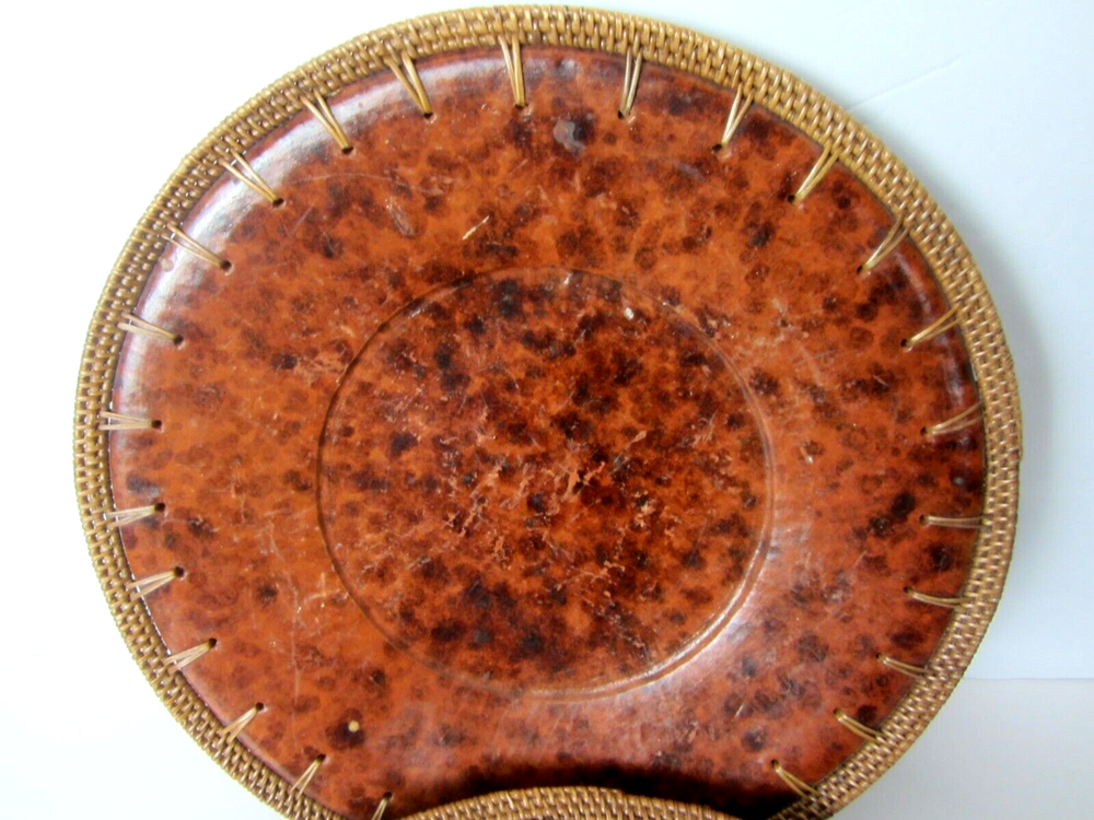 Pier 1 Imports 3 Plate Chargers Brown Tortoise Design 14” Wicker Border Heavy Weight *****Decorative Only - Do Not Put Food Directly on this Charger******