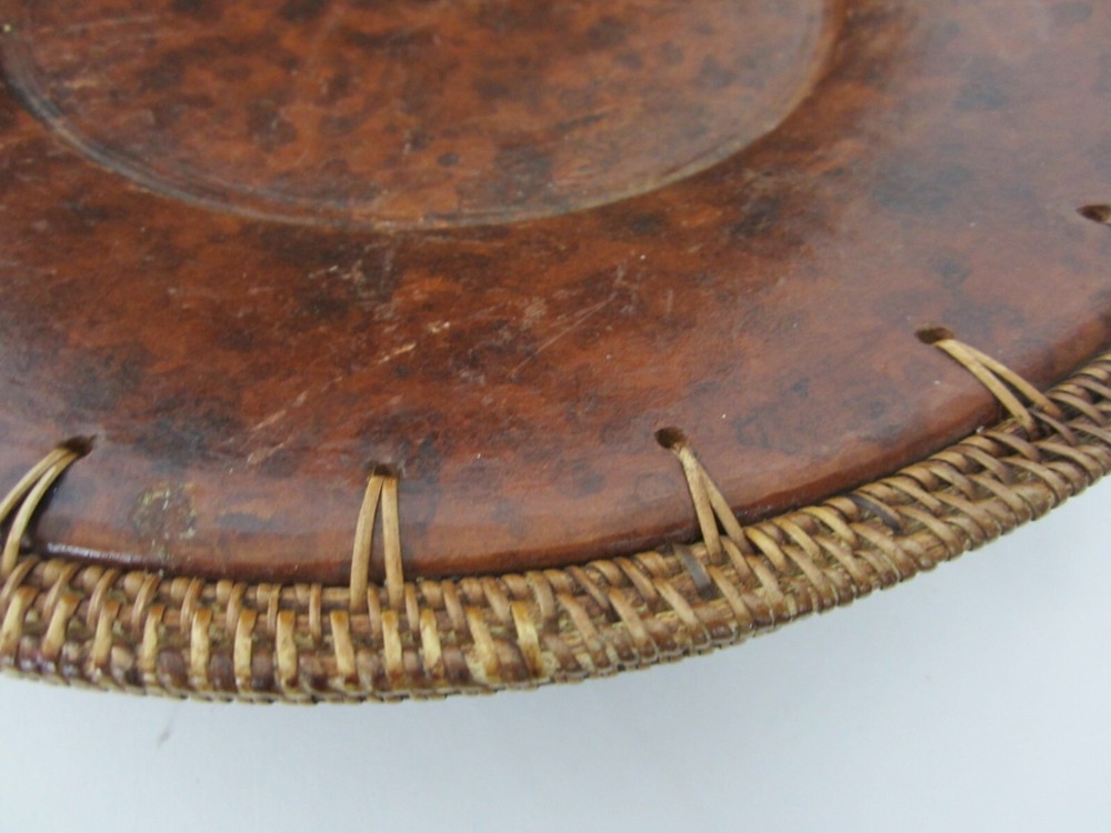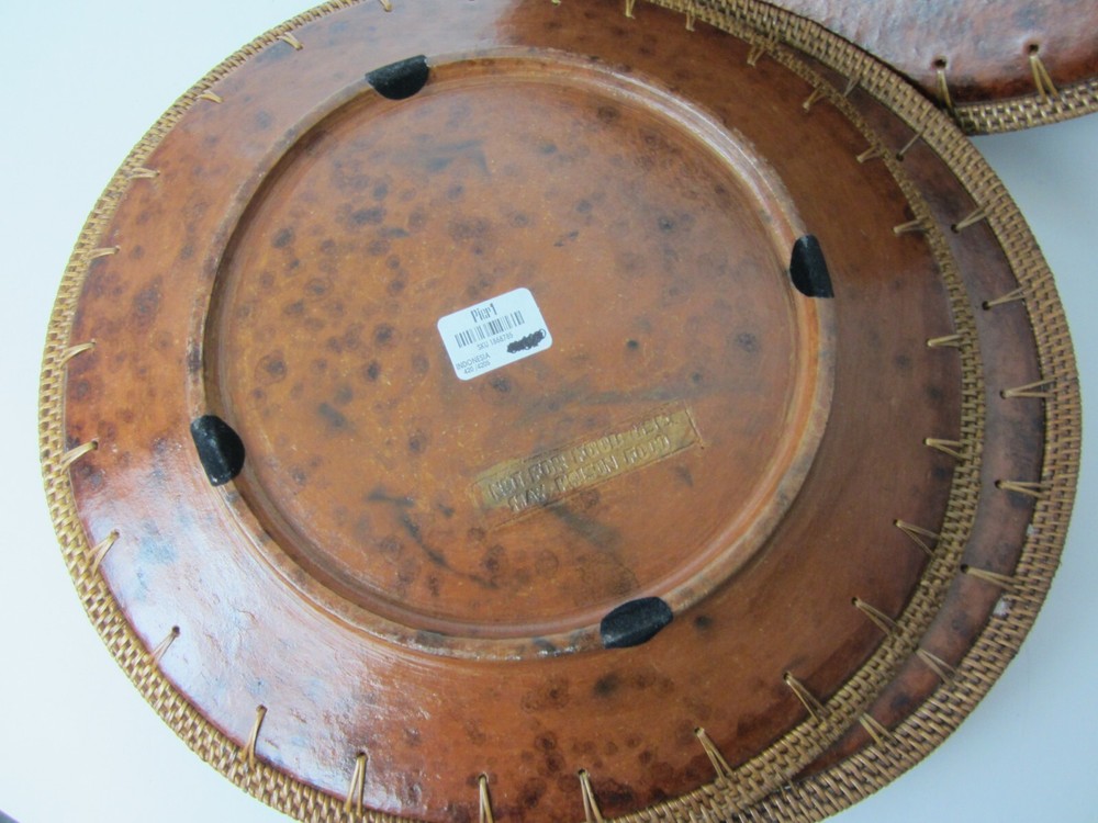 Pier 1 Imports 3 Plate Chargers Brown Tortoise Design 14” Wicker Border Heavy Weight *****Decorative Only - Do Not Put Food Directly on this Charger******...