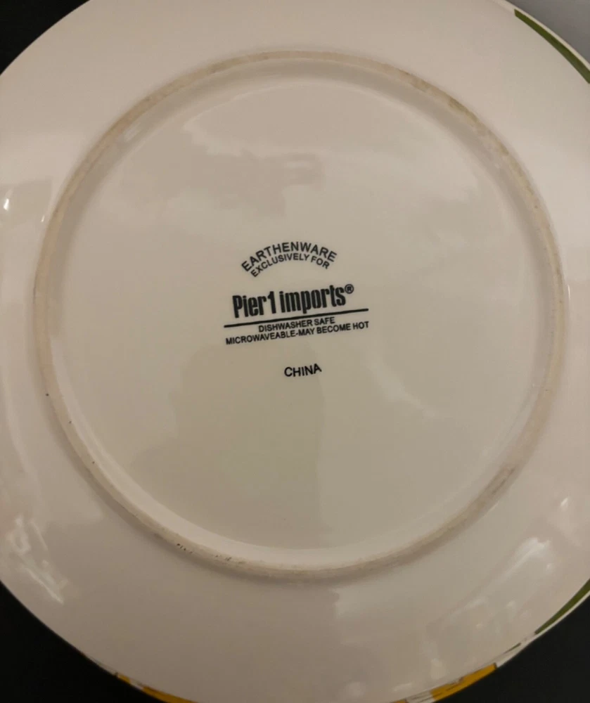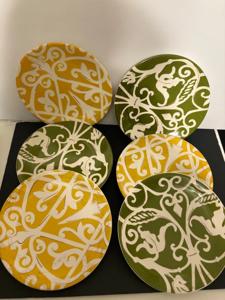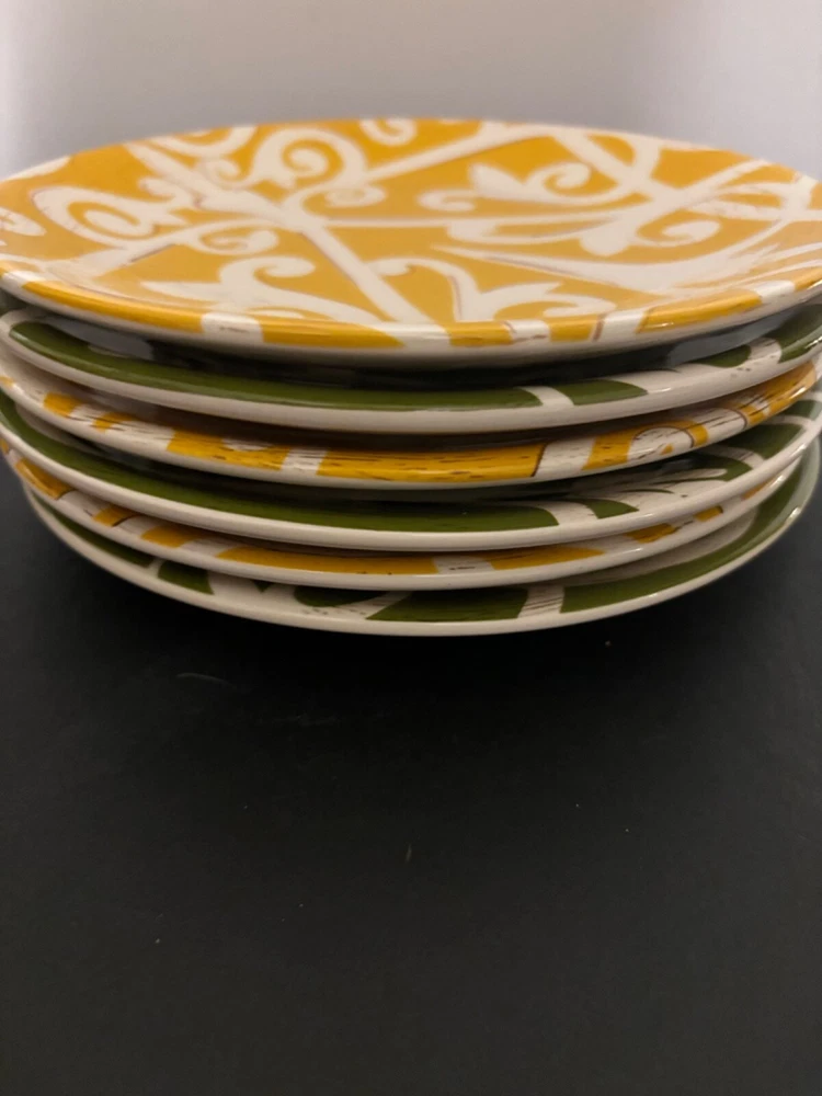 Pier 1 Imports Yellow& green w/ White Scrolls Salad Plate...