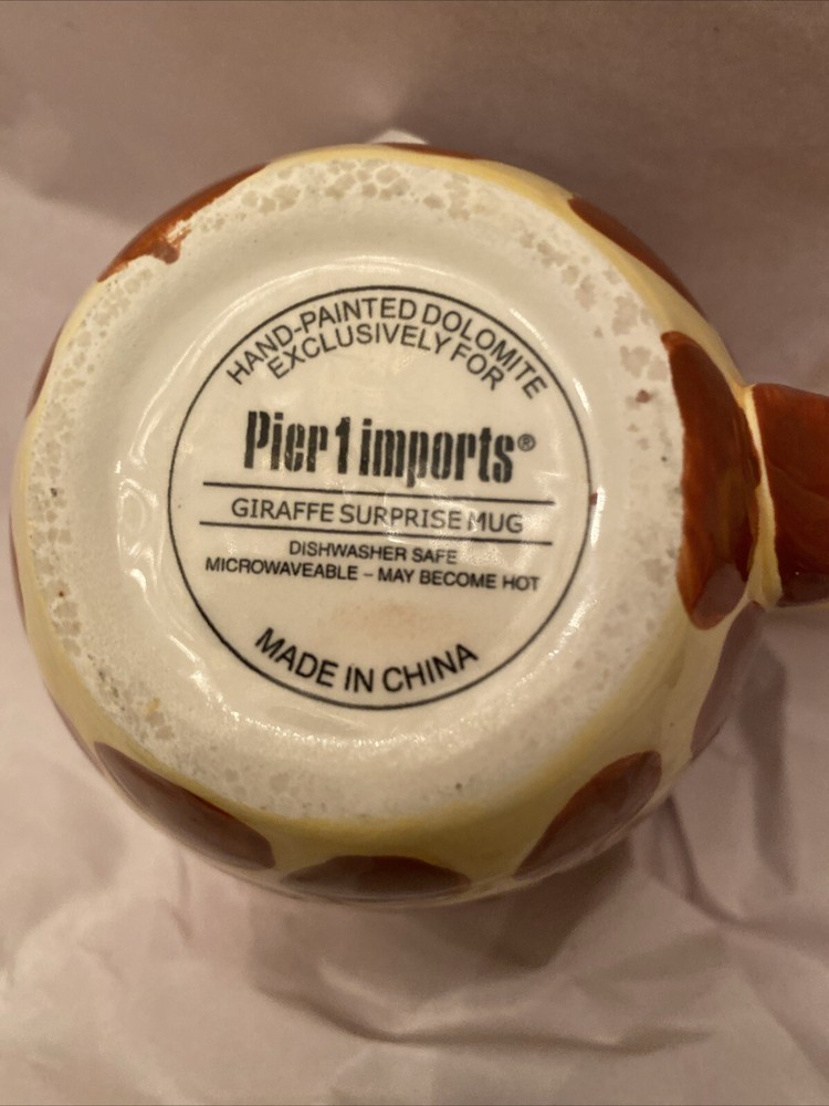 Giraffe Surprise Mug by Pier 1 imports. Hand painted Dolomite. Dishwasher safe, may become hot in microwave....